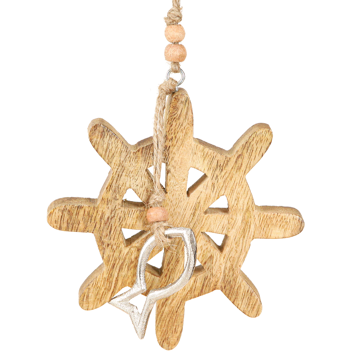 Produktname: Holz Steuerrad Deko Metallfisch Anhänger Ø12cm 3St
