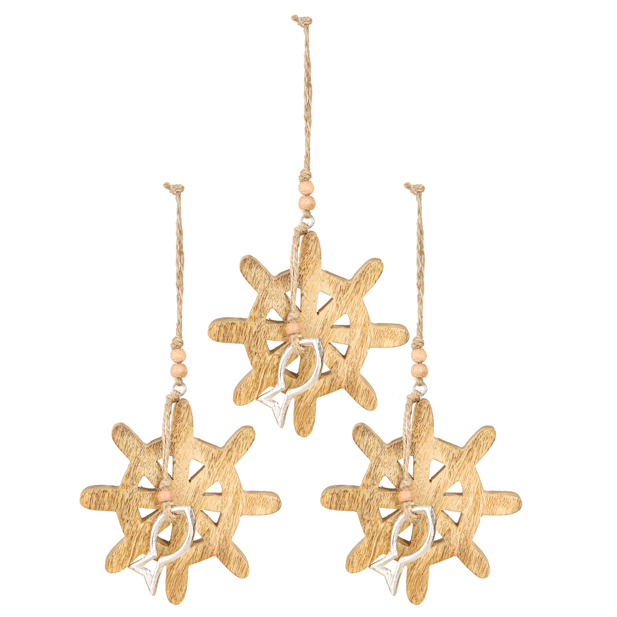 Holz Steuerrad Deko Metallfisch Anhänger Ø12cm 3St