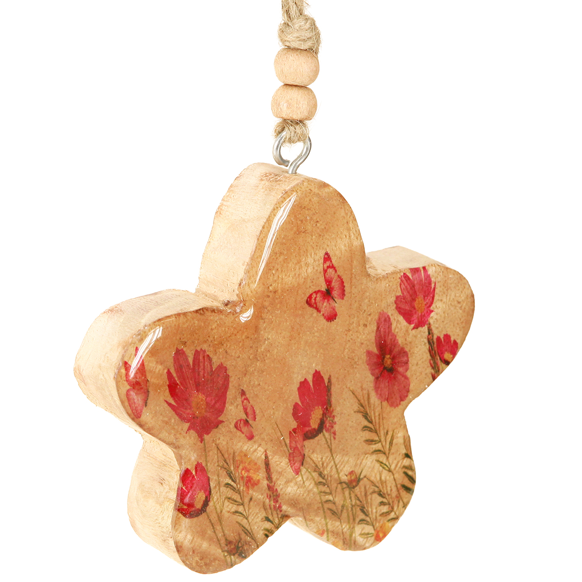 Verleihen Sie Ihrem Zuhause mit den Blumenanhängern eine frische und naturnahe Note. Die Holzanhänger in Form von Blumen sind die ideale Wahl für den Frühling. Diese liebevoll gestaltete Frühlingsdeko zum Hängen ist aus hochwertigem Holz gefertigt und zeichnet sich durch ihre einzigartige Blumenmalerei mit pinkfarbenen Blüten aus. In derselben Farbe werden Sie auch einen Schmetterling entdecken. Die blütenförmigen Anhänger mit einer Höhe von etwa 9 cm sind auf einer Seite mit einer bezaubernden Wiesenlandschaft bemalt. Eine transparente Lackschicht sorgt für einen leichten Schimmer und schützt das Motiv, sodass Sie lange Freude an diesen Anhängern haben werden. Die Holzdeko zum Hängen passt perfekt zu einem skandinavischen oder modernen Wohnstil und lässt sich durch die angebrachte Jutekordel mit zwei Holzperlen problemlos aufhängen. Kombinieren Sie diese Dekohänger mit anderen Naturmaterialien wie Rattan oder Jute aus unserem Sortiment bei Floristik24, um eine harmonische und einladende Frühlingsatmosphäre zu kreieren.