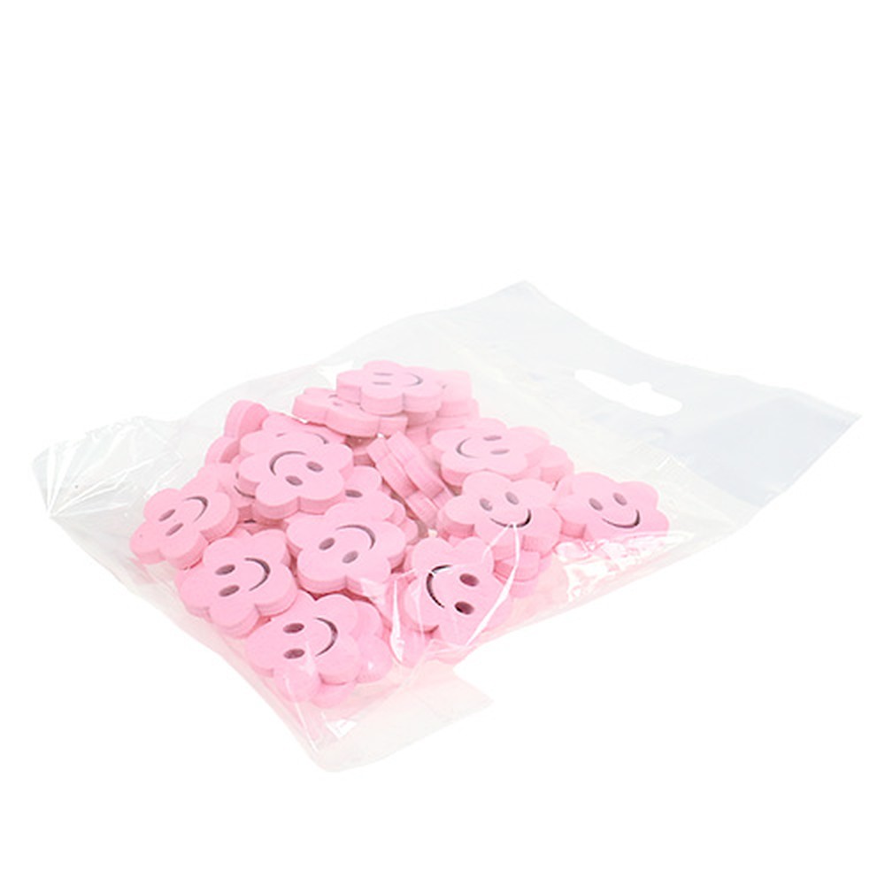 Produktname: Holzblume mit Gesicht Rosa 2,5cm 48 St