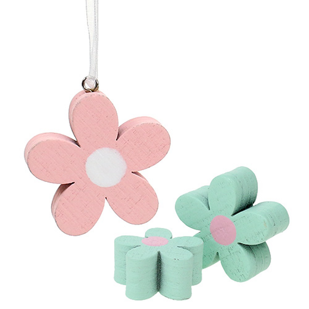 Produktname: Holzblumen zum Hängen, Streudeko Rosa, Grün 12 St