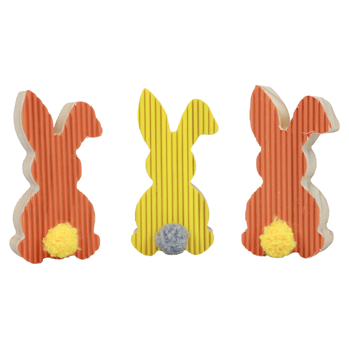 - Set aus 6 Stück: Je drei Holzhasen in Gelb und drei in Orange für harmonische Arrangements