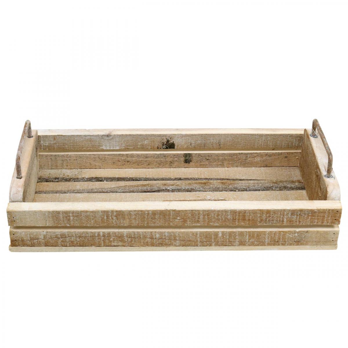 Holztablett mit Metallgriffen, Pflanzgefäß Weiß gewaschen L40cm