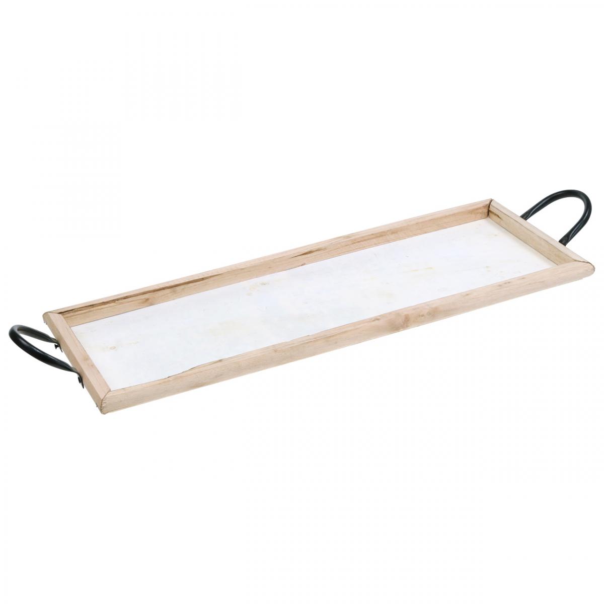 Holztablett mit Metallgriffen, Pflanzschale, Deko-Tablett Naturfarben L50cm