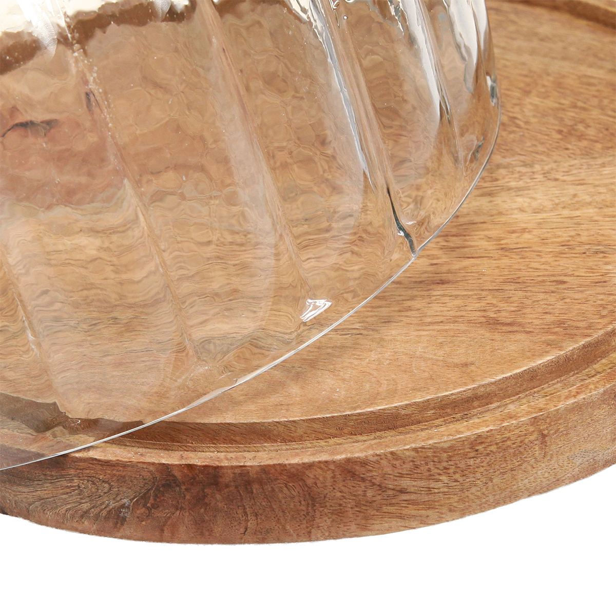- Holzteller mit Käseglocke aus natürlichen Materialien
