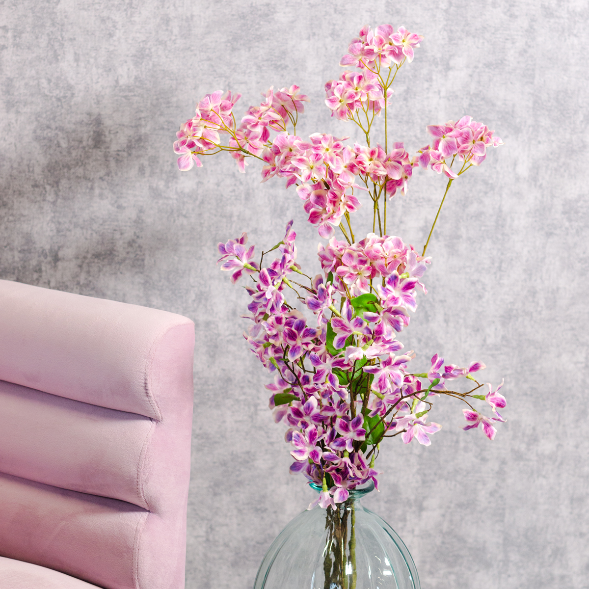 Die Hortensien Kunstpflanze überzeugt auf ganzer Linie – vom täuschend echten Look bis hin zur hochwertigen Verarbeitung aus Polyester und Kunststoff. Jede Blüte wirkt so lebendig, dass man beinahe den Duft von echten Blumen erahnen könnte. Mit einer Länge von 110 cm sowie einem Durchmesser von ca. 40 cm fügt sie sich elegant in jedes Dekor ein, ohne aufdringlich zu wirken. Der warme Rosaton harmoniert besonders schön mit romantischen Einrichtungsstilen wie Vintage oder Shabby Chic, macht sich aber ebenso ausgezeichnet in moderner oder minimalistischer Umgebung. Sie suchen nach Ideen? Kombinieren Sie unsere Hortensie mit weißen Orchideen oder sanften Eukalyptuszweigen für ein traumhaftes Tischarrangement. Oder setzen Sie die Zweige einzeln in schlichten Glasvasen als Akzent auf Kommoden und Fensterbänken ein.