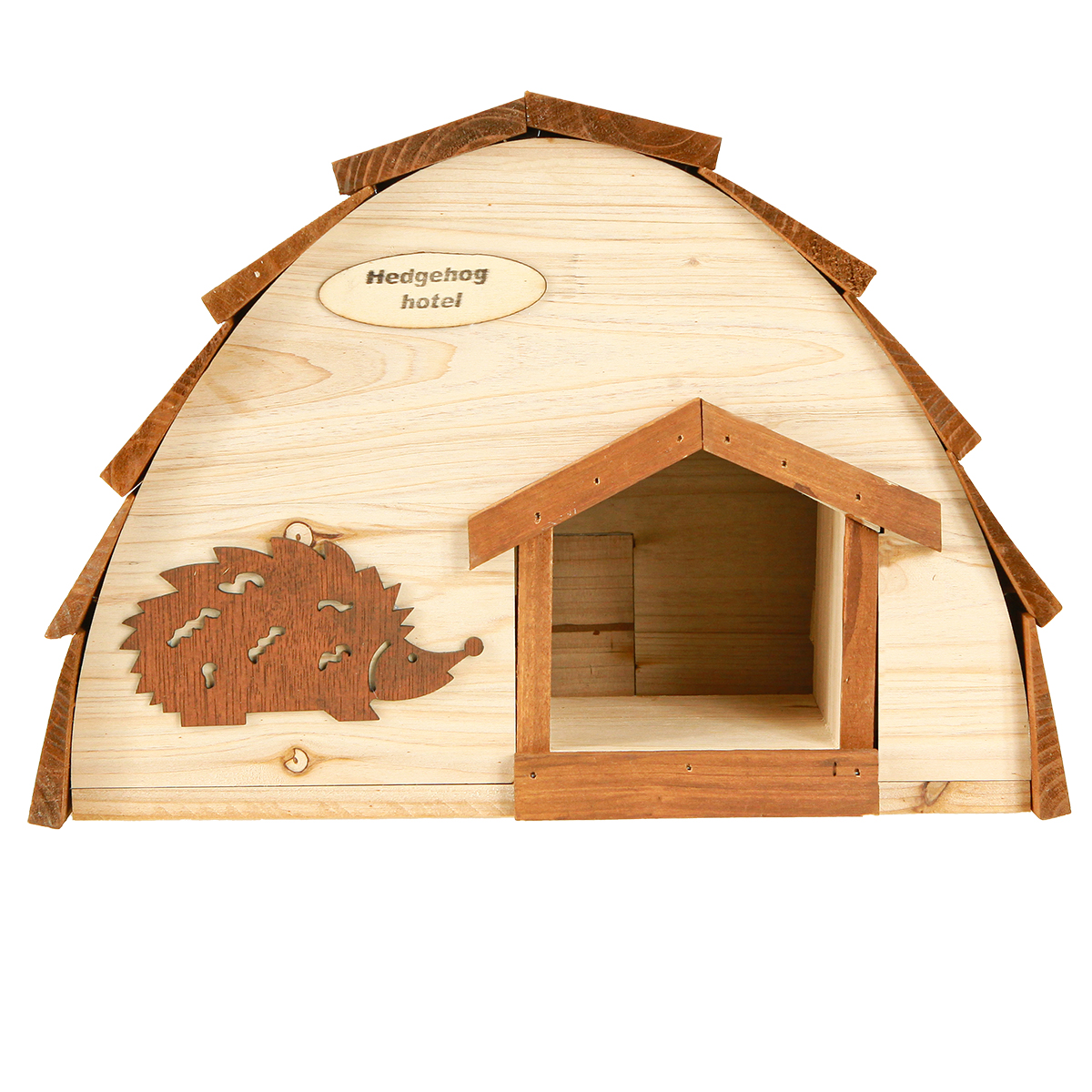 - Niedliche Igelfigur und Aufschrift "Hedgehog Hotel" auf der Vorderseite