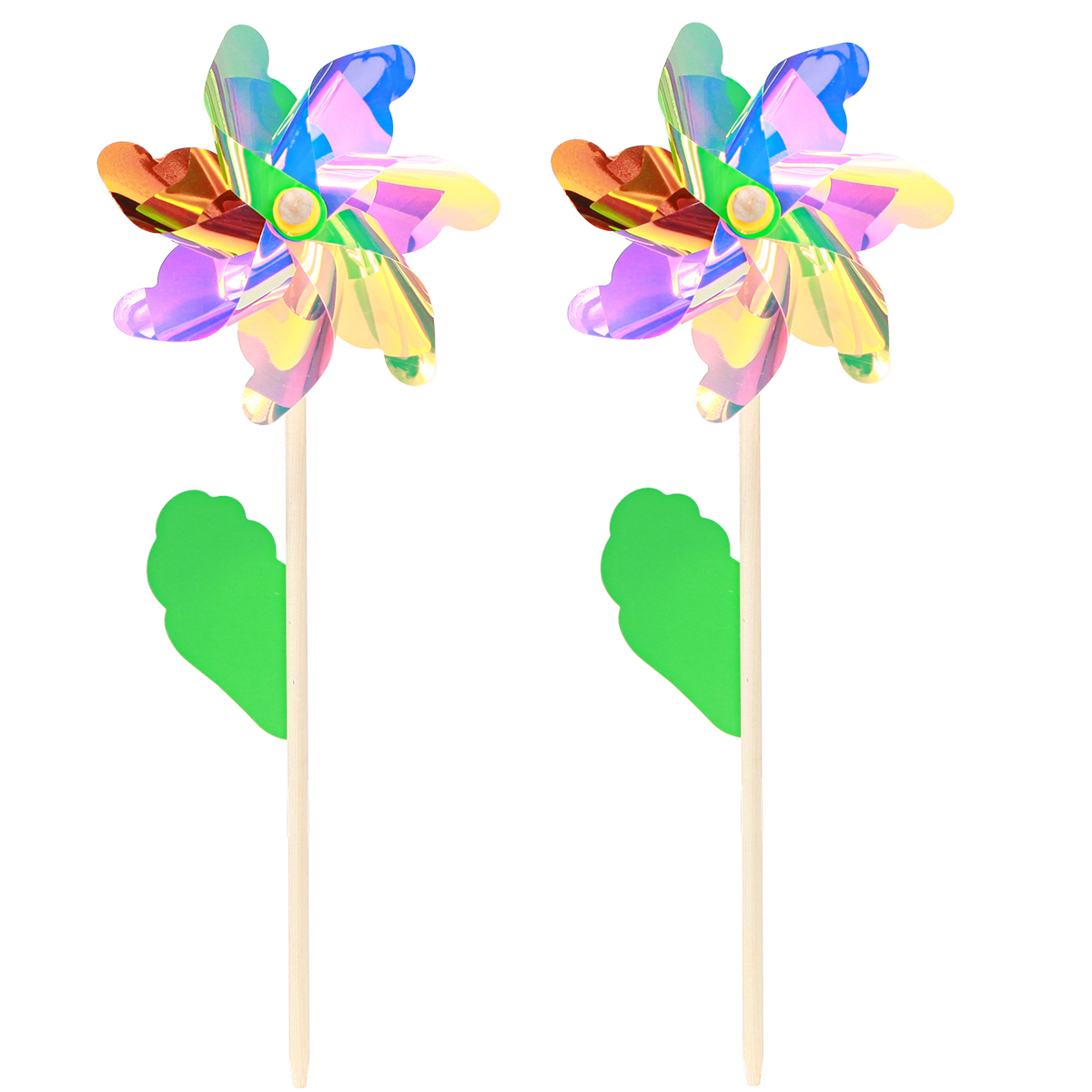 Irisierendes Windrad Blume mit Blatt Windmühle Ø17,5cm 2St