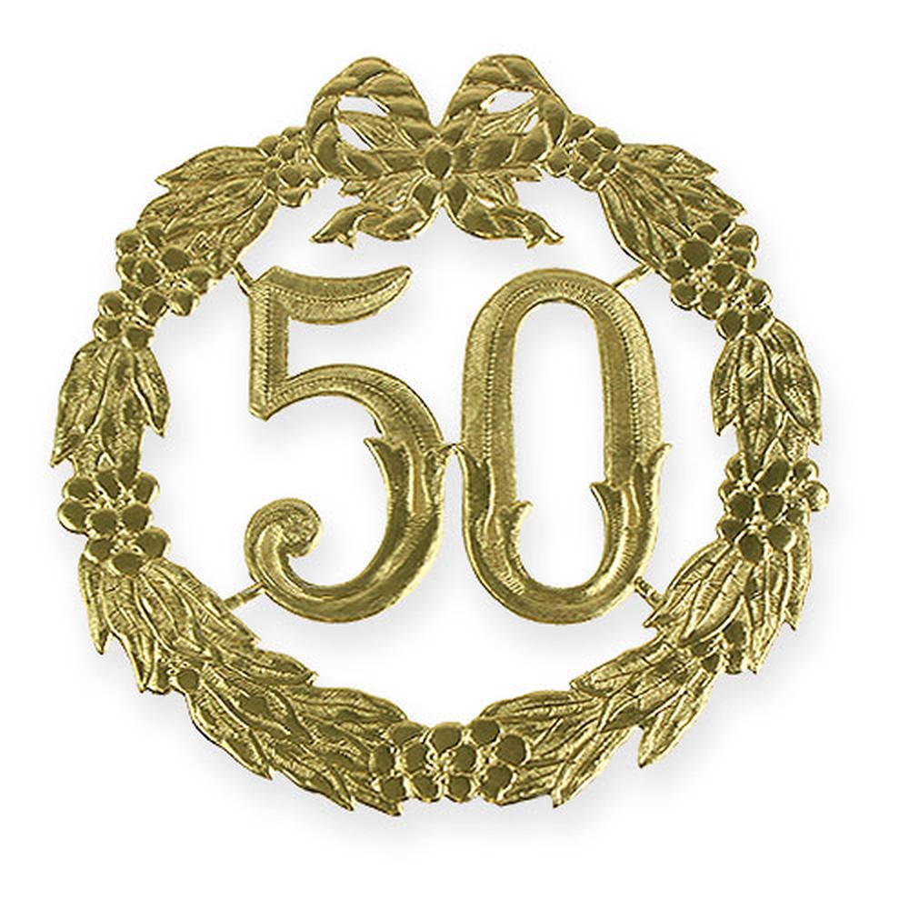 Die goldene Jubiläumszahl „50“ wurde aus hochwertig geprägtem Karton gefertigt und hat einen Durchmesser von rund 24 Zentimetern. Schmücken Sie auch ein Vereins- oder Firmenjubiläum oder Ihr Fest zum 50. Geburtstag mit dieser vielseitig einsetzbaren Dekozahl.