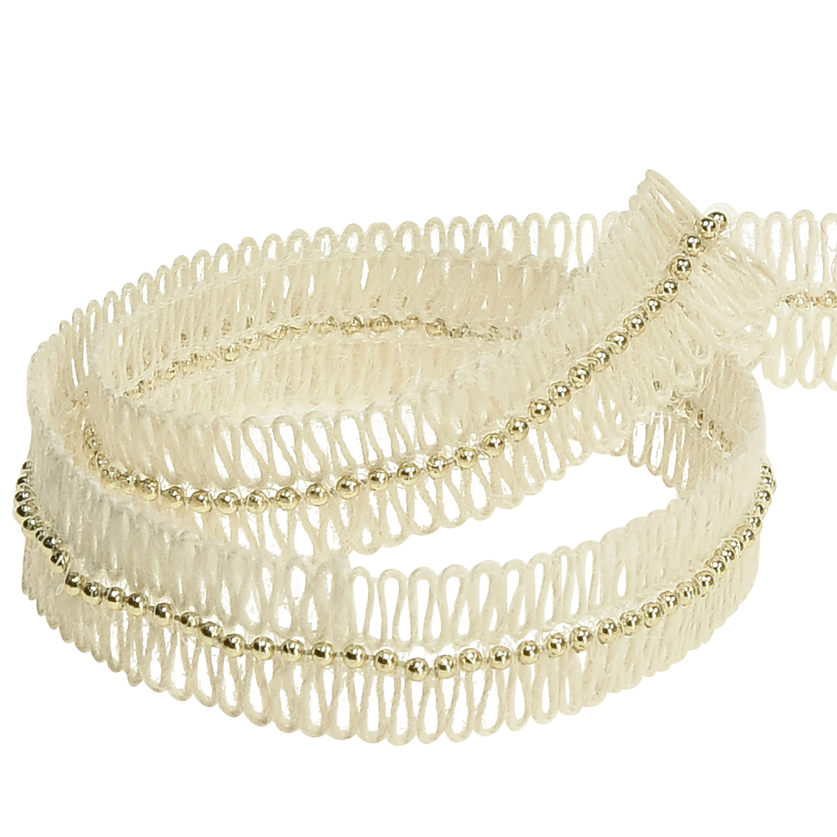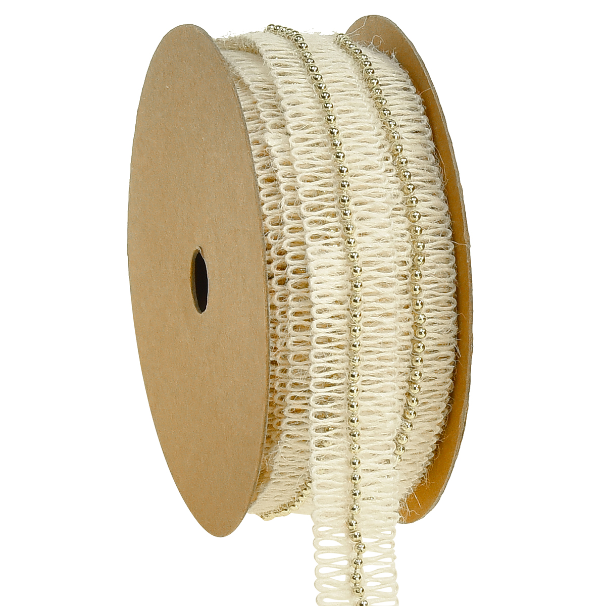 Produktname: Juteband Band mit goldenen Perlen Jute Creme 17mm 10m
