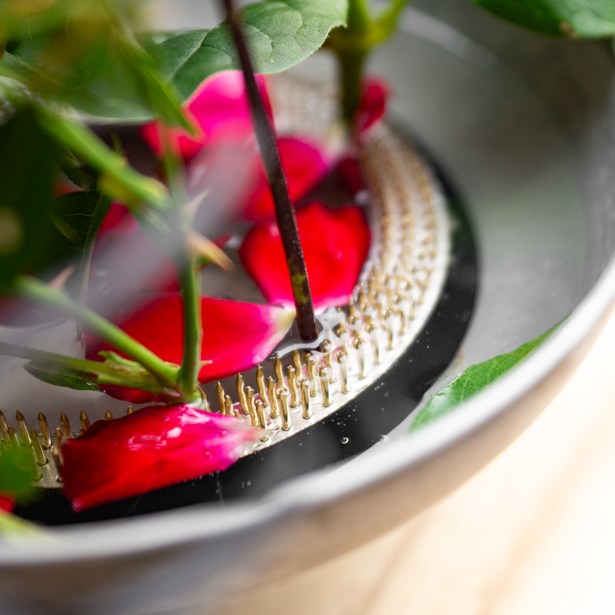Kreieren Sie atemberaubende Blumenarrangements! Der runde Kenzan-Steckigel mit einem Durchmesser von etwa 120 mm und 255 Nadeln aus hochwertigem Messing ist mehr als nur ein Hilfsmittel für Floristen und Ikebana-Begeisterte – er ist ein unverzichtbares Tool , auch um für zu Hause Blumendeko zu gestalten. Ob Ikebana, klassische Blumengestecke oder moderne Tischdekorationen, dieser Steckigel hält Ihre Kreationen zuverlässig und stabil. Messing zeichnet sich nicht nur durch seine robuste Qualität, sondern auch durch seine elegante Optik auszeichnet? Mit dem schonenden Kunststoff-Schoner auf der Unterseite verhindern Sie nicht nur Kratzer auf empfindlichen Oberflächen, sondern können Ihren Kenzan auch langfristig sorglos verwenden, da er auch beim Einsatz unter Wasser zuverlässig an Ort und Stelle bleibt. Wäre es nicht schön, statt Steckschaum, Draht oder Strohkränze immer wieder kaufen zu müssen, endlich ein Accessoire zu haben, das so langlebig ist, auf das Sie jahrelang bei Ihren floristischen Projekten darauf zählen können?