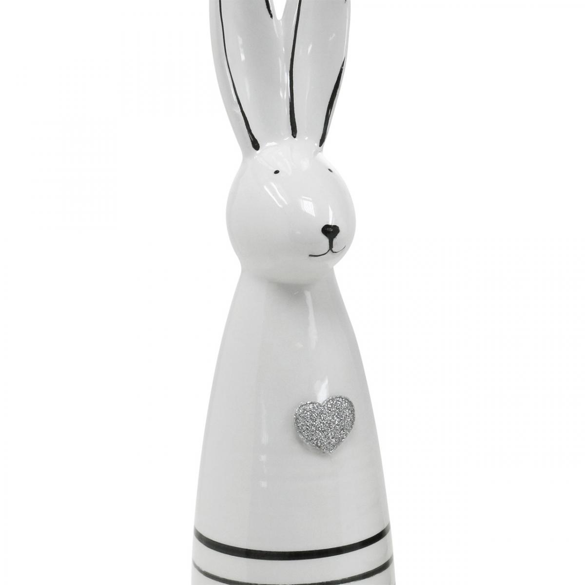 Produktname: Keramik Hase Kegel Weiß Schwarz Herz Streifen H30cm