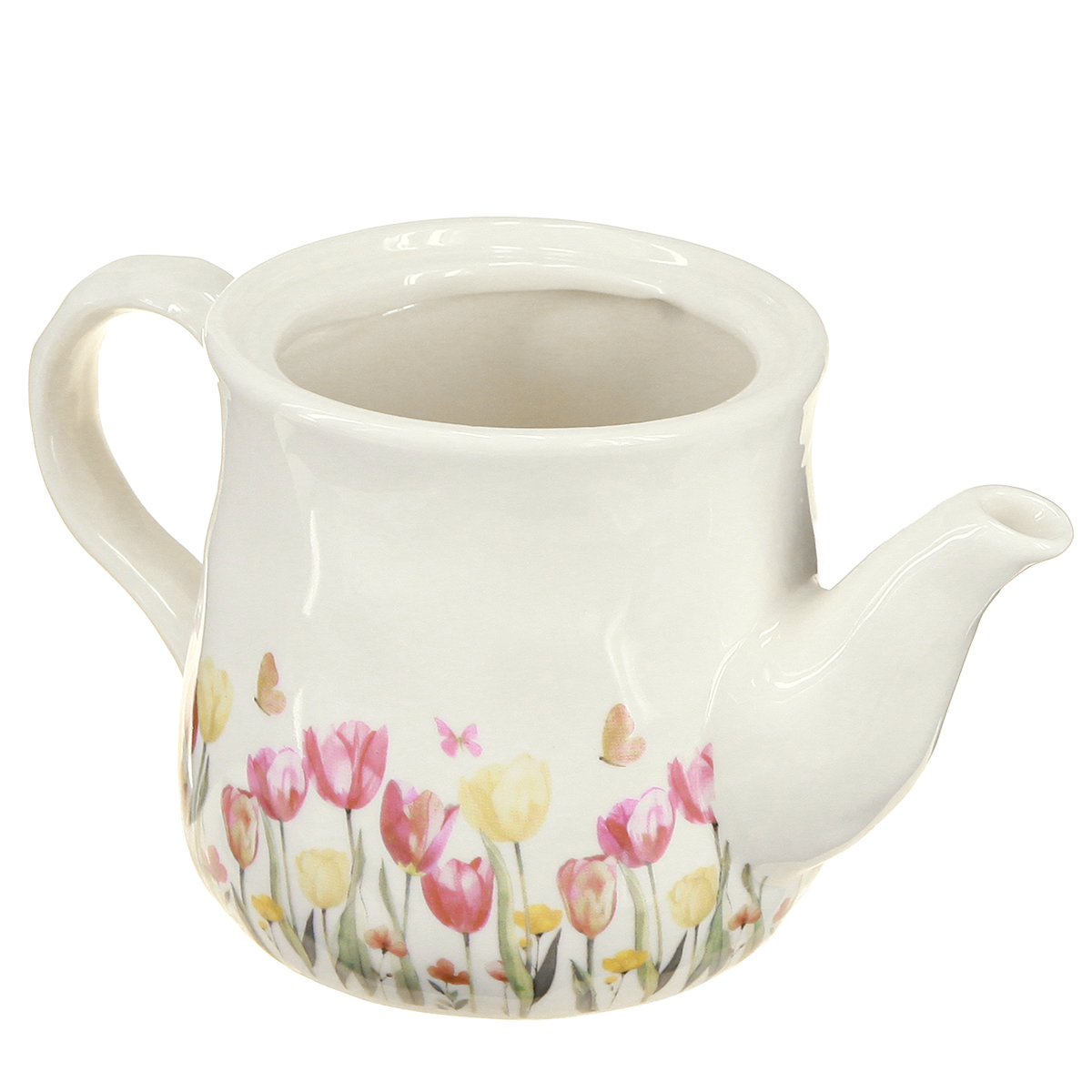 Produktname: Keramik Kanne mit Blumenmotiv für frühlingshafte Akzente im Wohnbereich 20cm