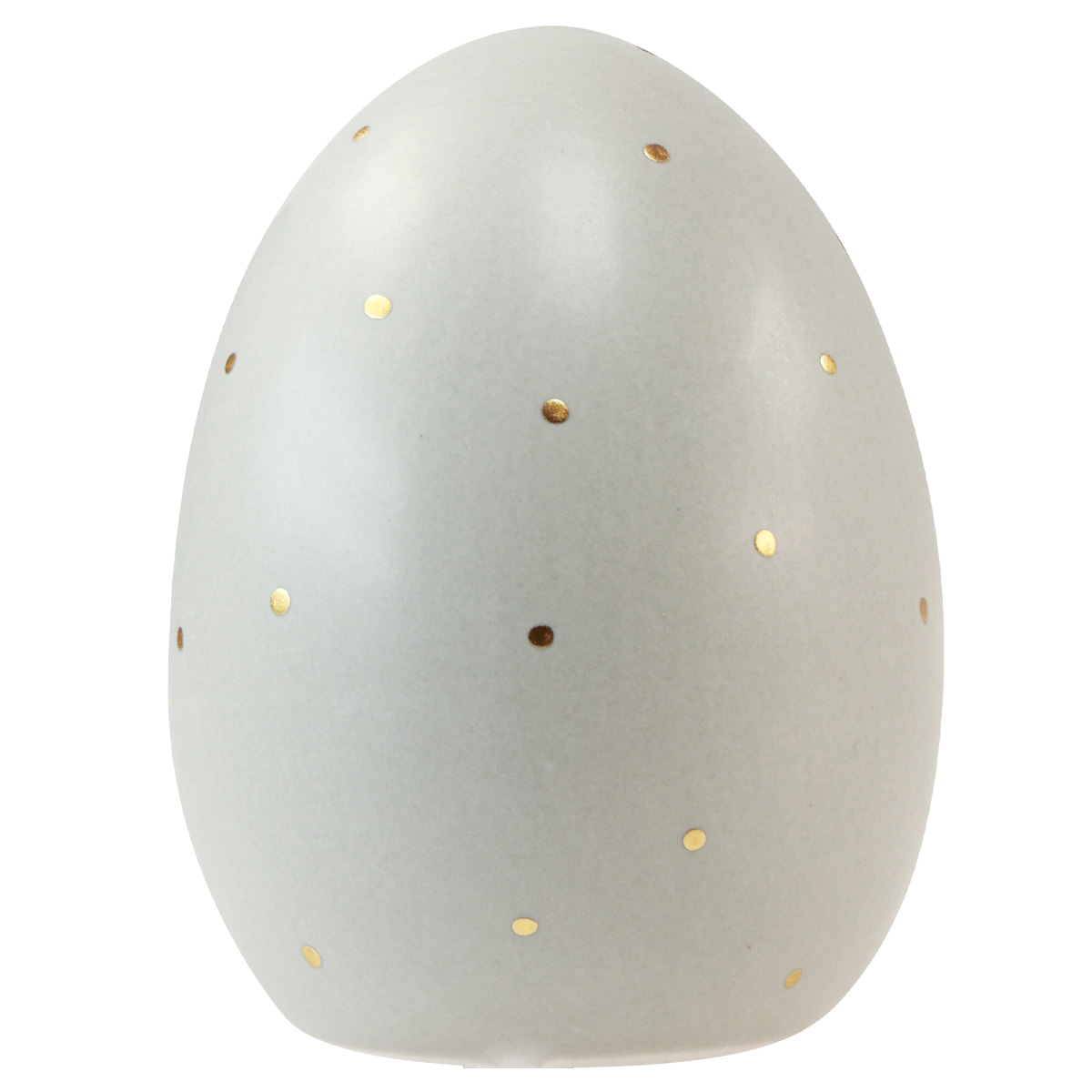 Diese hellgrauen Keramik-Ostereier, verziert mit vielen kleinen Goldpunkten, sind das i-Tüpfelchen für Ihr Osternest. Die elegante Osterdeko überzeugt durch ihre Detailverliebtheit und hochwertige Verarbeitung. Jedes Osterei hat die beeindruckende Größe eines echten Gänseeis und fügt sich harmonisch in moderne Interieurs ein.
