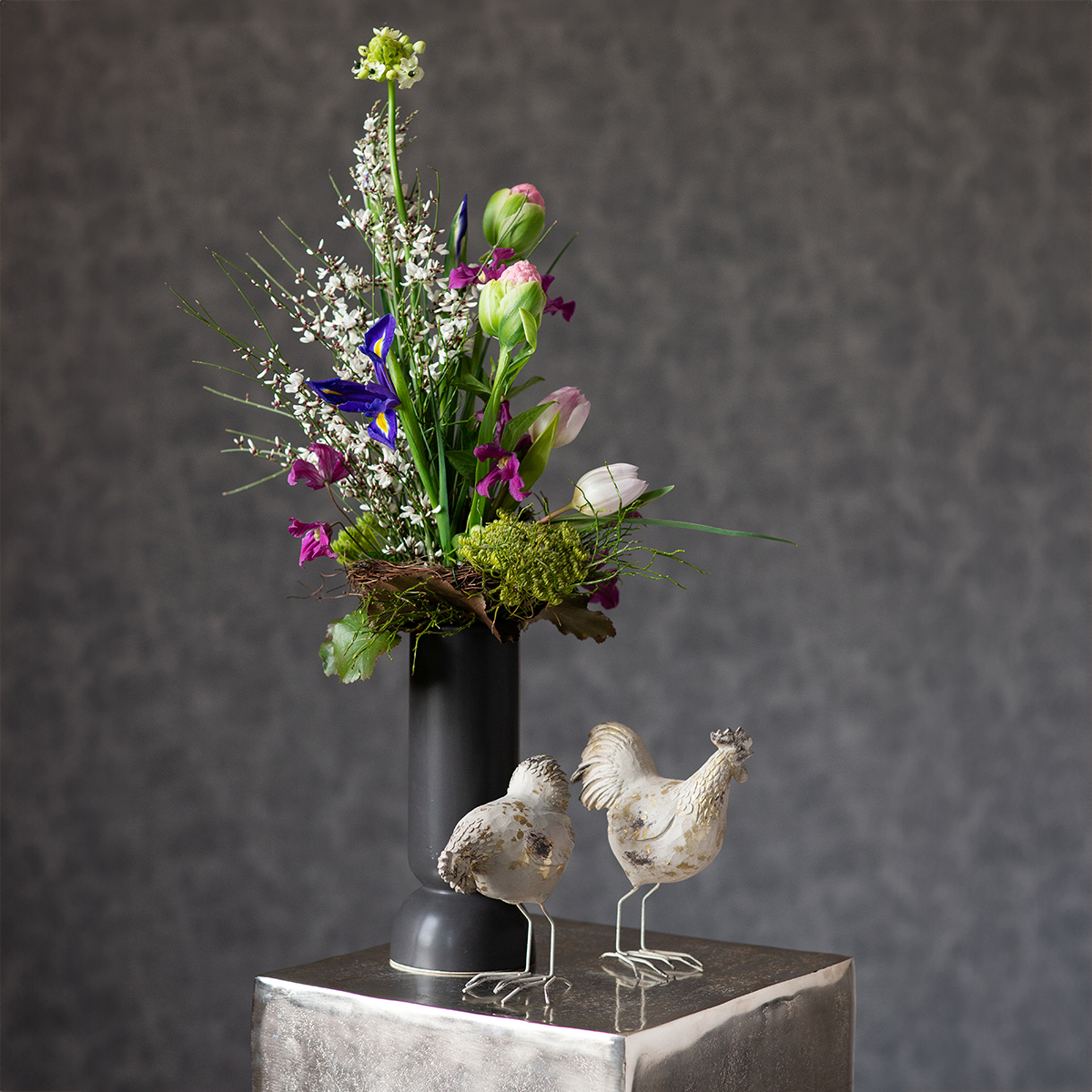 Besonders zur Geltung kommen in der schwarzen Vase gebleichte und naturhelle Gräser und Trockenblumen. Aber auch Blumen mit knalligen Farben werden bei dieser dunklen Keramik-Vase wunderbar zur Schau gestellt.