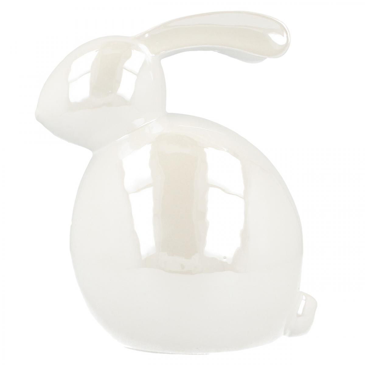 Keramikhase, Osterfigur, Frühlingsdeko, Osterhase Weiß, Perlmuttfarben H17cm