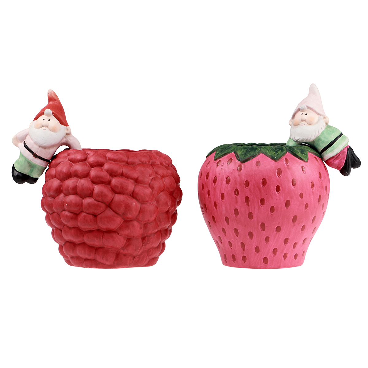 Sie erhalten das Set pfiffiger Keramik-Deko zu 2 Stück, jeweils 2-teilig mit lustigen Deko-Zwergen als Kantenhänger. Wunderbar geeignet als Tischdeko für den Sommer!