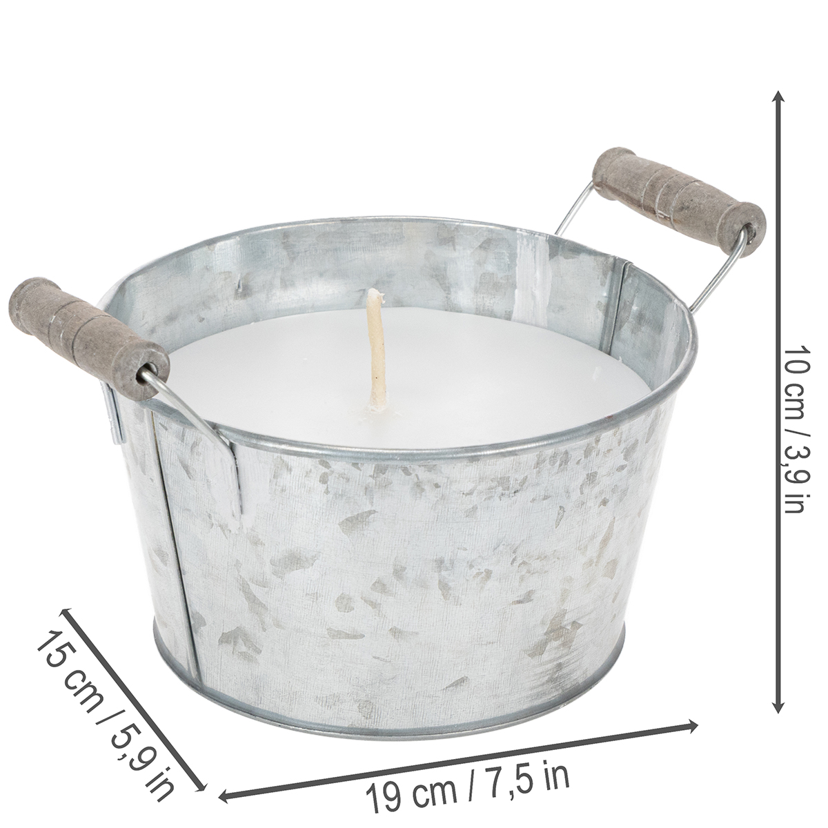 Kerze im Zinkeimer für stimmungsvolle Dekoration auf Terrasse und Balkon 15cm