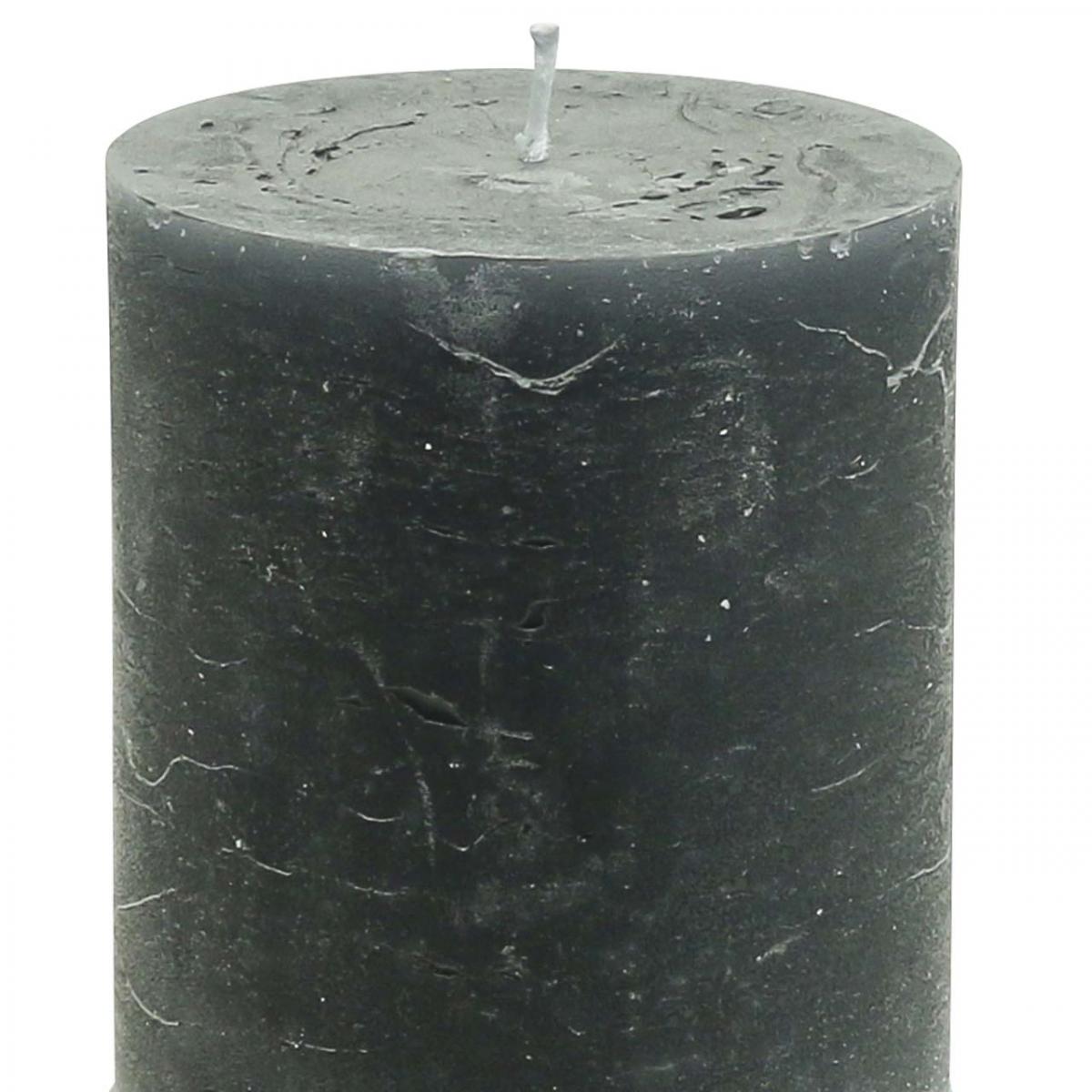 Produktname: Durchgefärbte Stumpenkerzen Anthrazit 70x100mm 4er Set – Dekoration, Advent, lange Brenndauer