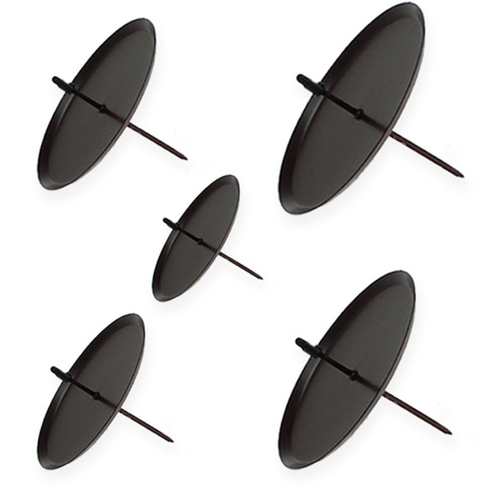 Insbesondere zur Adventszeit werden viele Gestecke und Kränze hergestellt, die mit Kerzen bestückt werden. Greifen Sie dafür zu den Kerzenhaltern in Braun, die Sie hier in verschiedenen Größen finden! Alle Kerzenstecker bestehen aus hochwertigem, leicht zu reinigendem Metall und haben einen Steck- sowie einen Kerzendorn und eine praktische Stellfläche für die Kerzen, die zeitgleich auch als Tropfschutz fungiert. Mit dem jeweiligen Steckdorn können Sie die hochwertigen Kerzenstecker in Steckmoos, Stroh oder auch Styropor einfügen und dadurch Kugelkerzen und Stumpenkerzen in floristische Werkstücke einfügen.