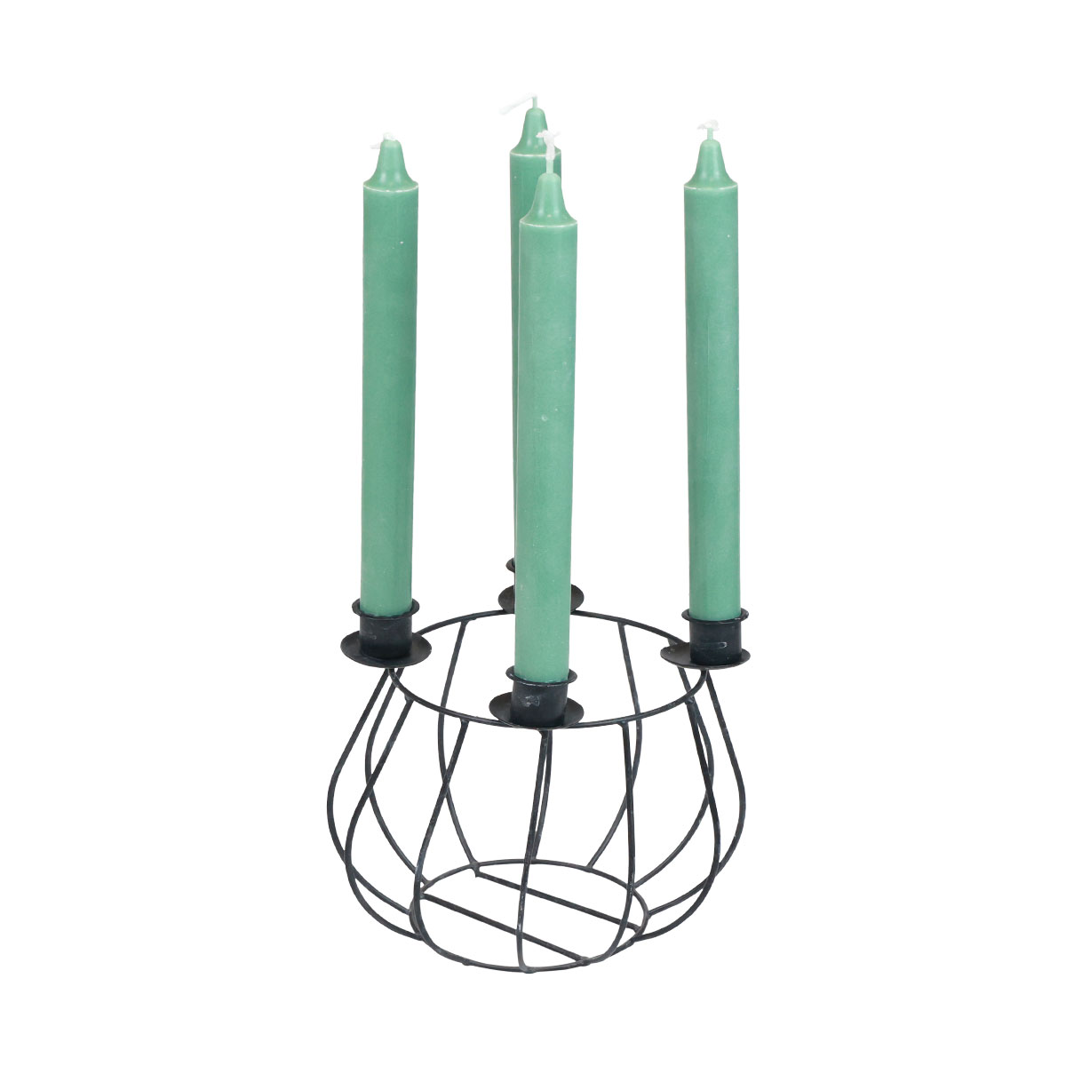 Der Korpus des Kerzenhalters ist leer und lädt zum Befüllen ein. Zwischen 4 und Zentimeter liegen die Streben auseinander. Legen Sie Weihnachtskugeln und etwas Tannengrün in die Öffnung und machen Sie den Kerzenhalter zu einem Adventskranz. Zur Sicherheit können echte Stabkerzen durch LED-Kerzen ersetzen.