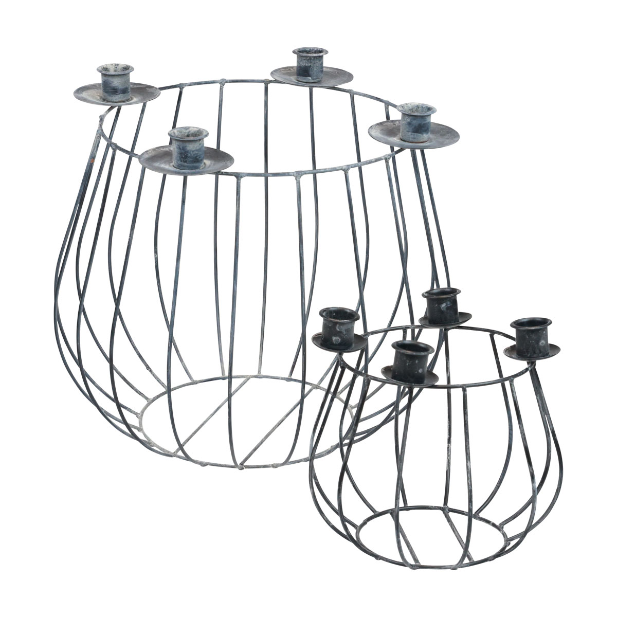 Produktname: Kerzenhalter Metall Grau Gitterkorb Ø25/10,5cm 2er-Set