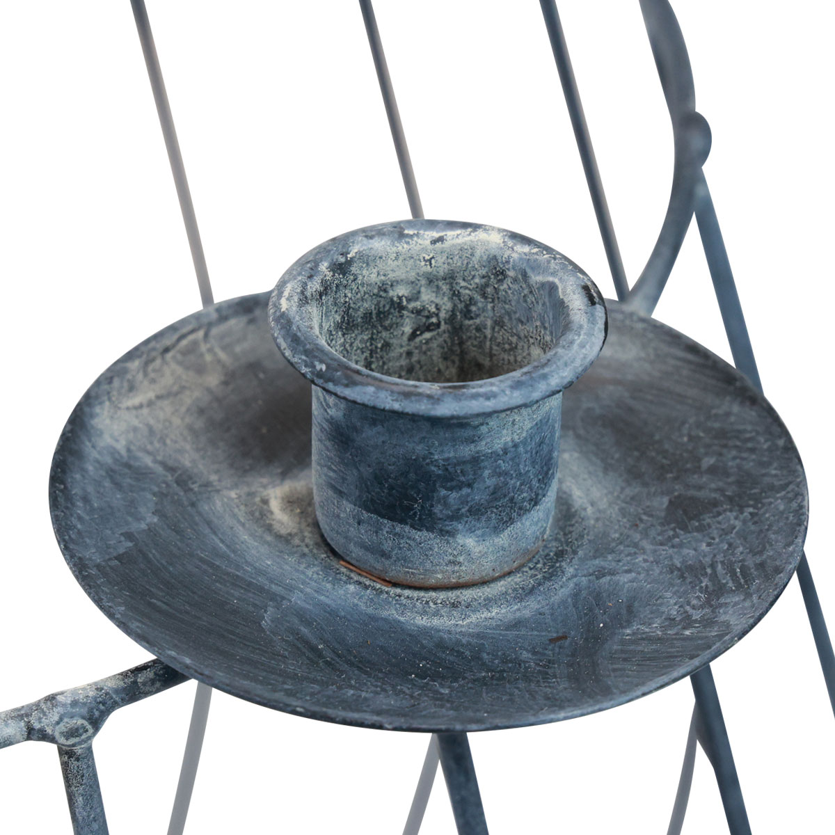 Die Kerzenhalter aus Metall in Grau und leicht weiß gewaschen, passend als Vintage-Deko, kommen in einem Set aus einem kleinen und einem großen Exemplar.