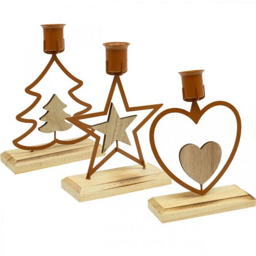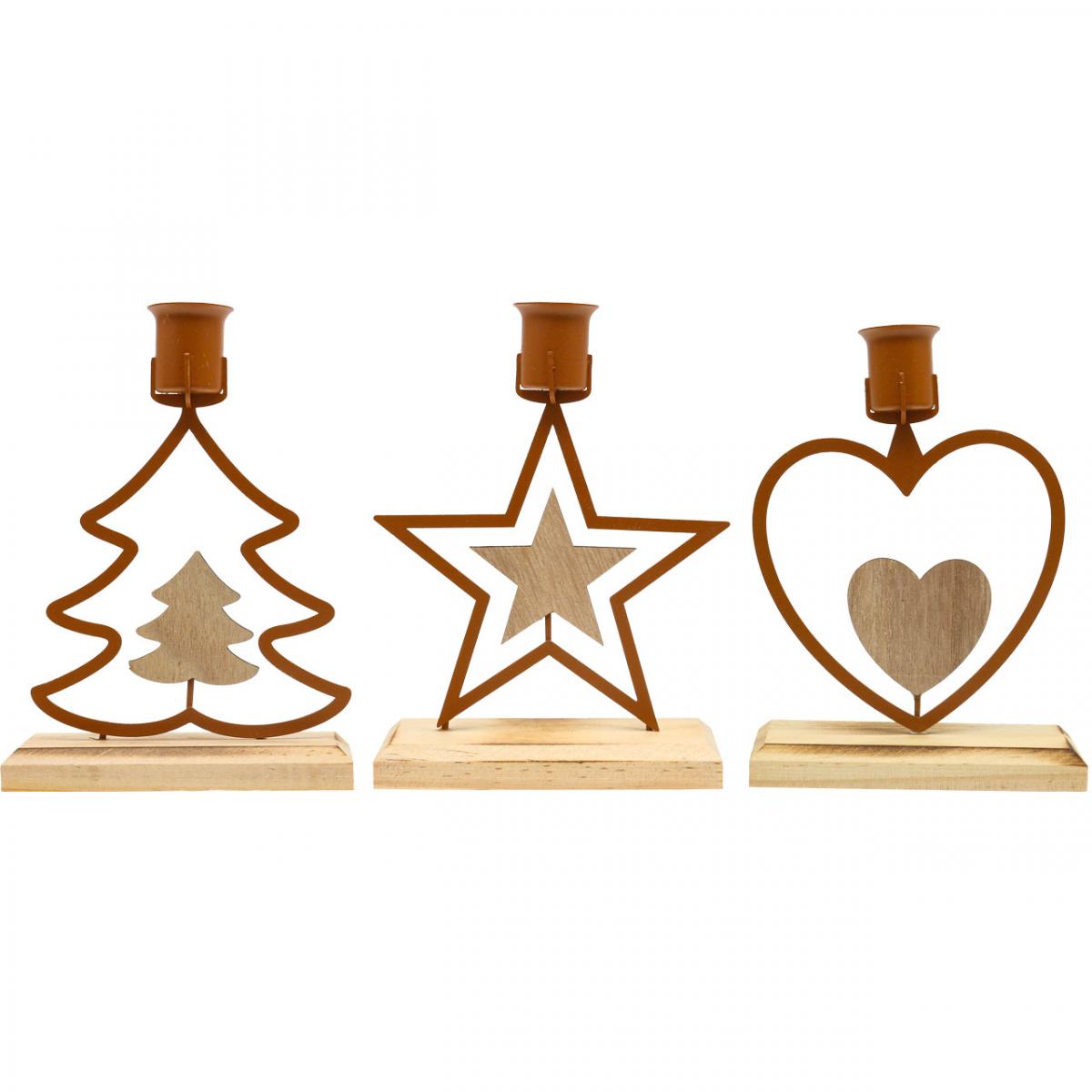 Kerzenhalter Stabkerzen Stern Herz Tanne Braun H16,5cm Sortiert 3St