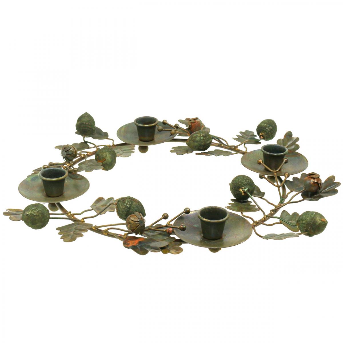 Produktname: Kerzenkranz Metall Messing-Optik Dekrokanz Eicheln Ø36cm