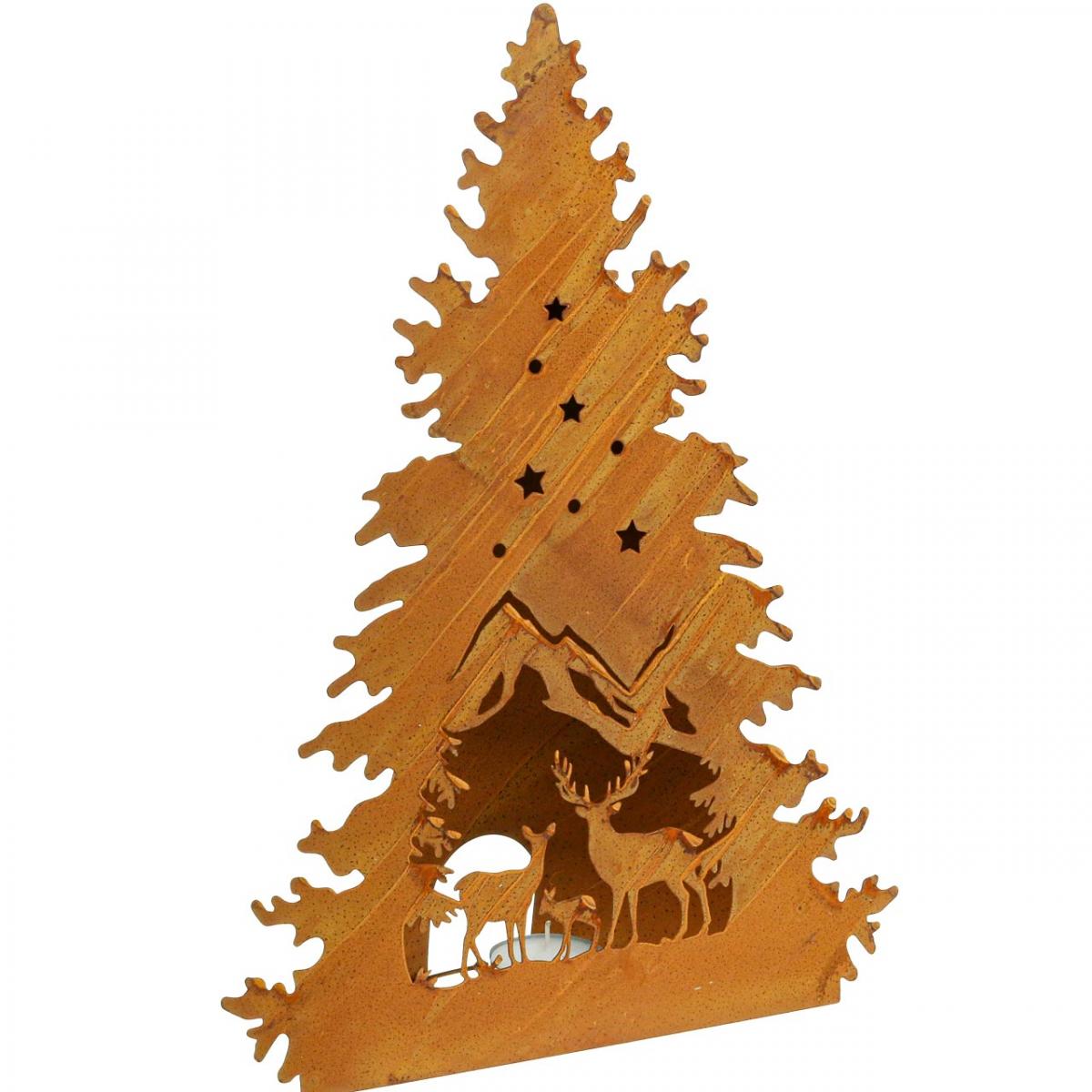 Produktname: Teelichthalter Weihnachten Edelrost Hirsch Tanne H50cm