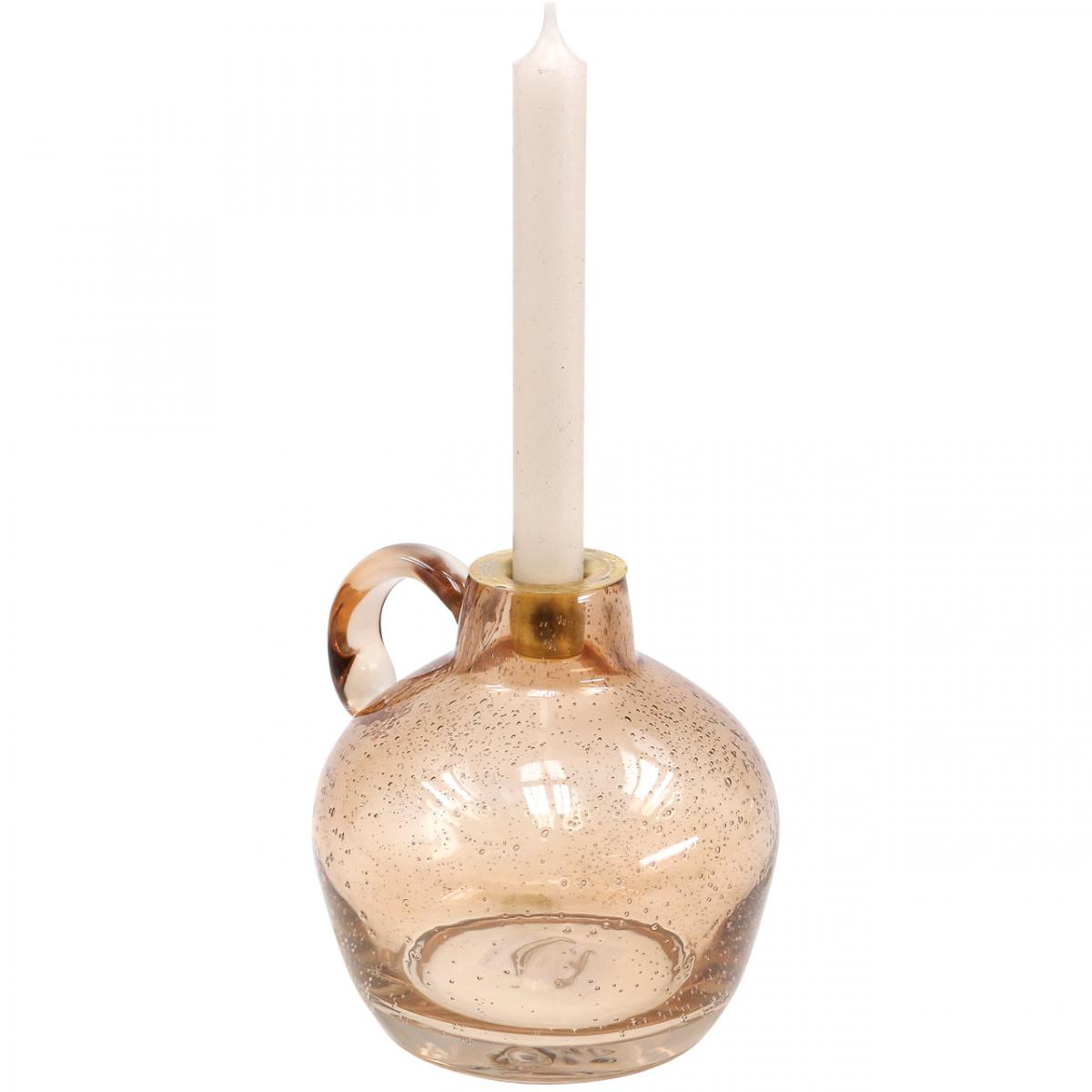 Kerzenständer Glas Stabkerze Hellbraun Deko Krug H15,5cm