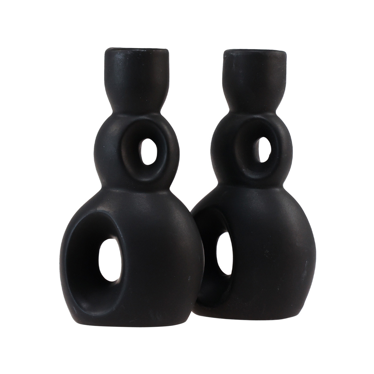 Kerzenhalter Keramik Kerzenständer Schwarz H13cm 2 St