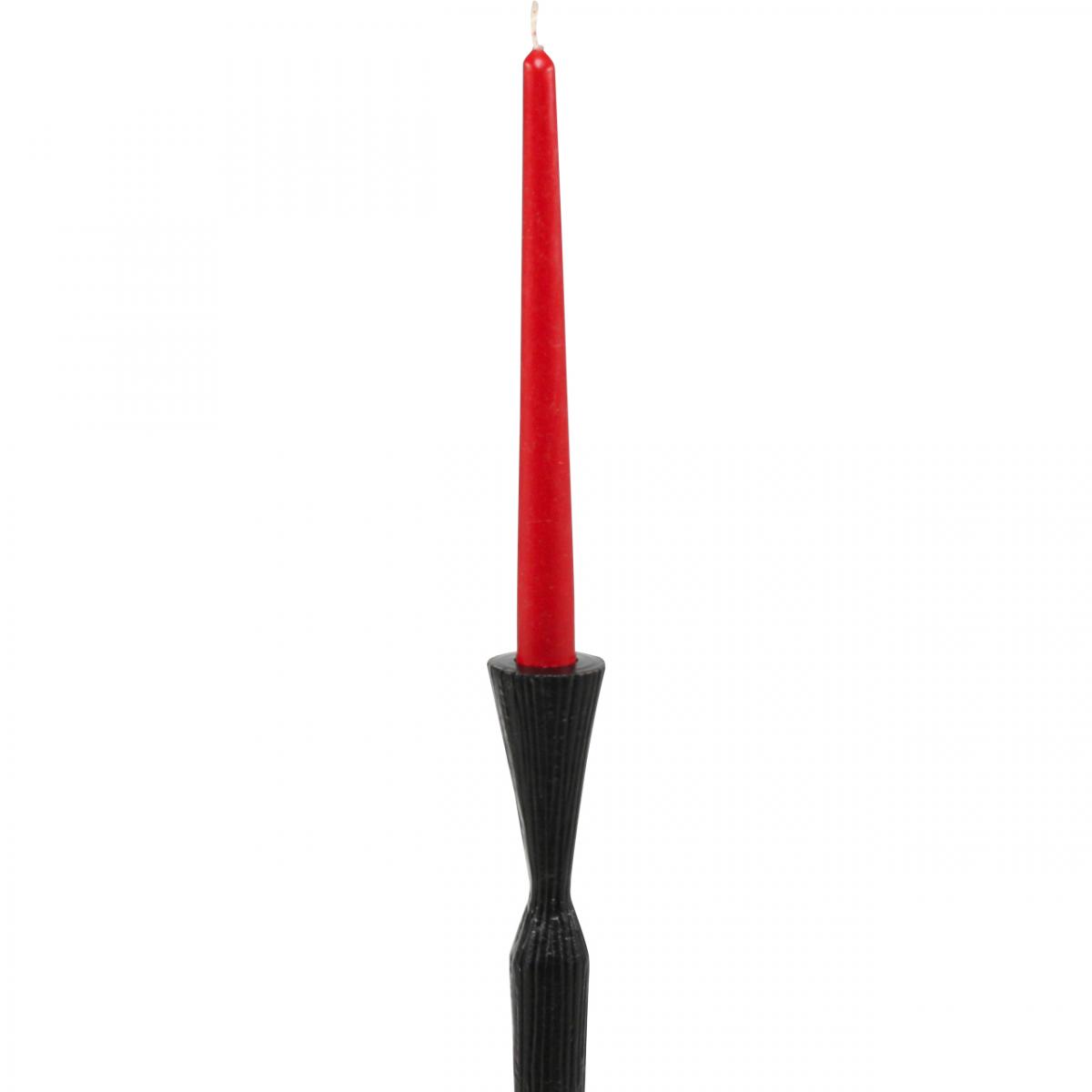 Der Kerzenständer in Schwarz hat eine Halterung, die für alle gängigen Stabkerzen und Spitzkerzen geeignet ist.