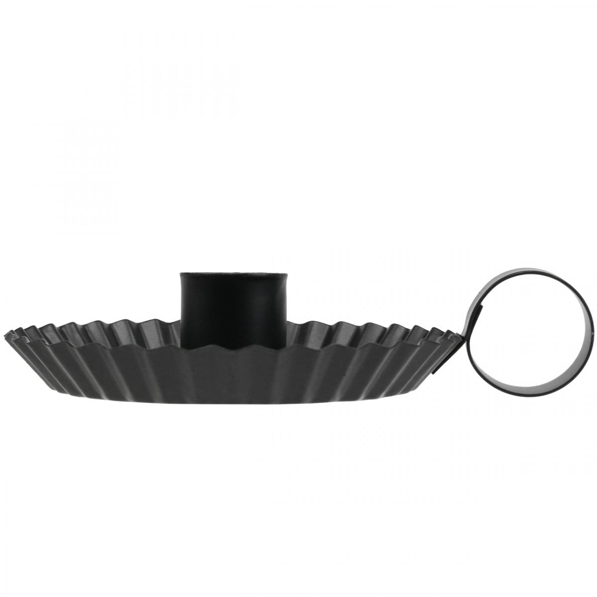Stylisch ist nicht nur der geriffelte Rand, sondern auch der Henkel des Kerzenständers. Hat die Kerzenschale einen Durchmesser von zirka 9,5 Zentimetern, ist der gesamte Kerzenständer etwa 12 Zentimeter lang.