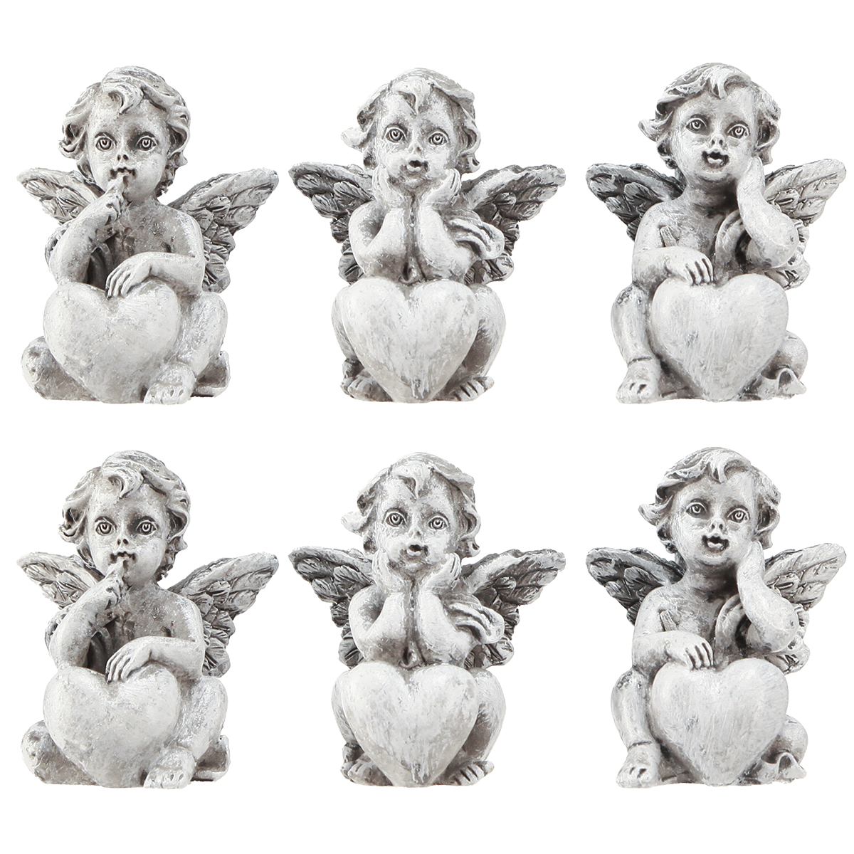 Kleiner Engel mit Herz Grabschmuck Figur Grau H5,5cm 6 St