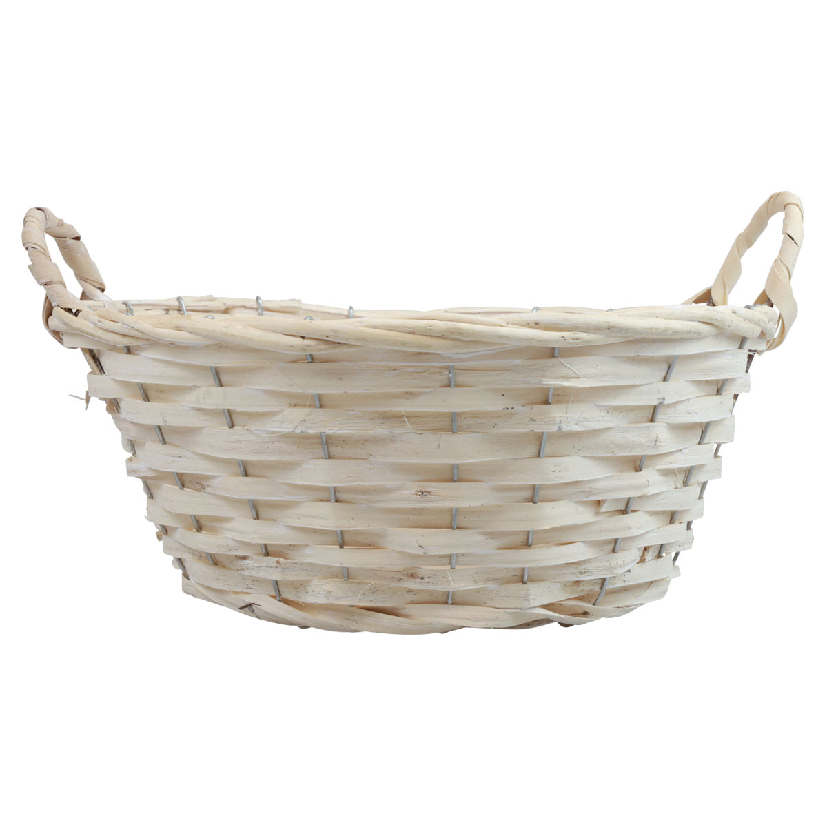 Produktname: Korb mit Griffen Spankorb Pflanzkorb Weiß Vintage Deko Ø35cm