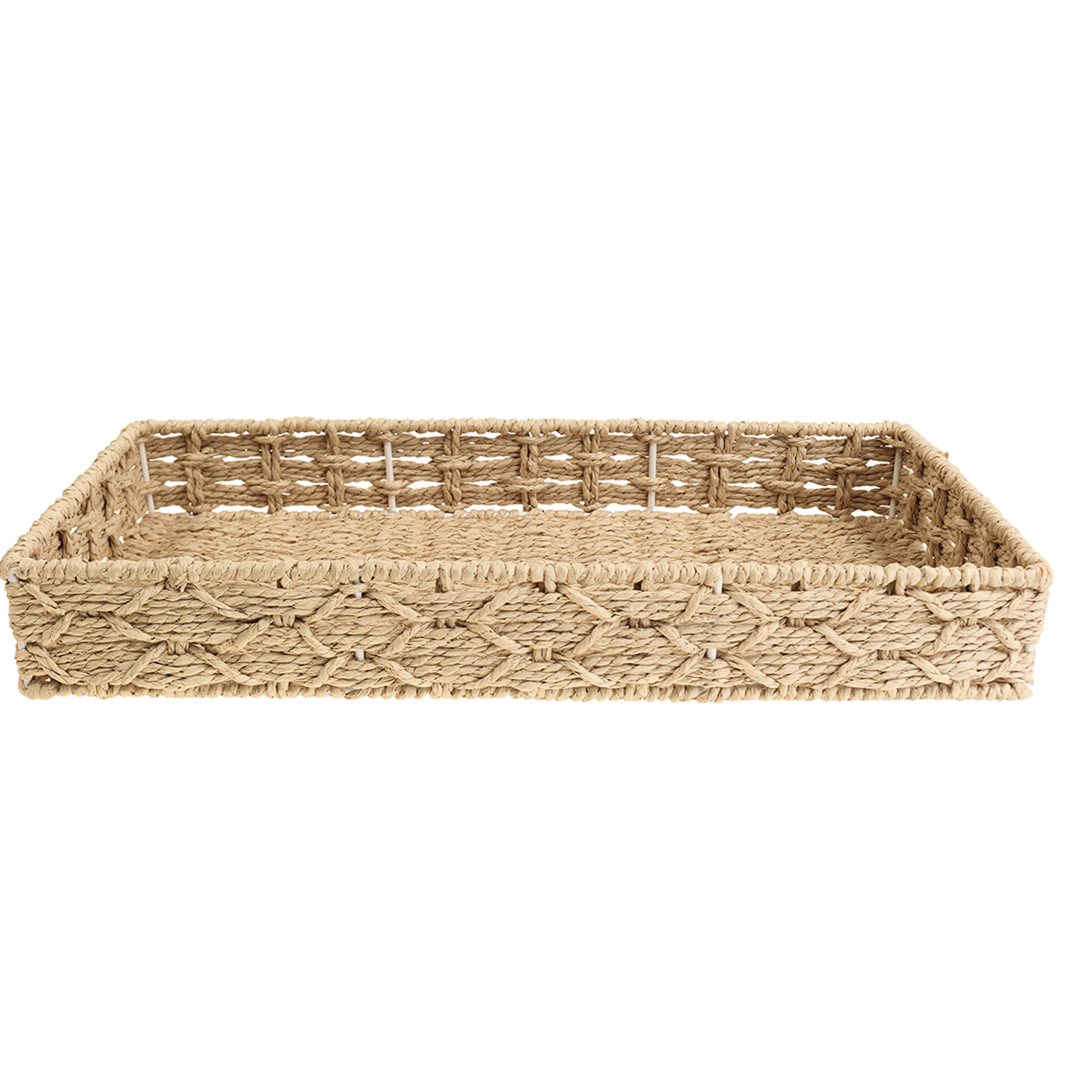 Das Design des Korbtabletts mit seinen kunstvoll geflochtenen Rauten an den Seiten integriert sich nahtlos in jede Jahreszeit und jeden Einrichtungsstil. Vom sommerlichen Windlichterzauber bis hin zur herbstlichen Trockenblumendeko – diese Korbtabletts bieten den perfekten Rahmen.