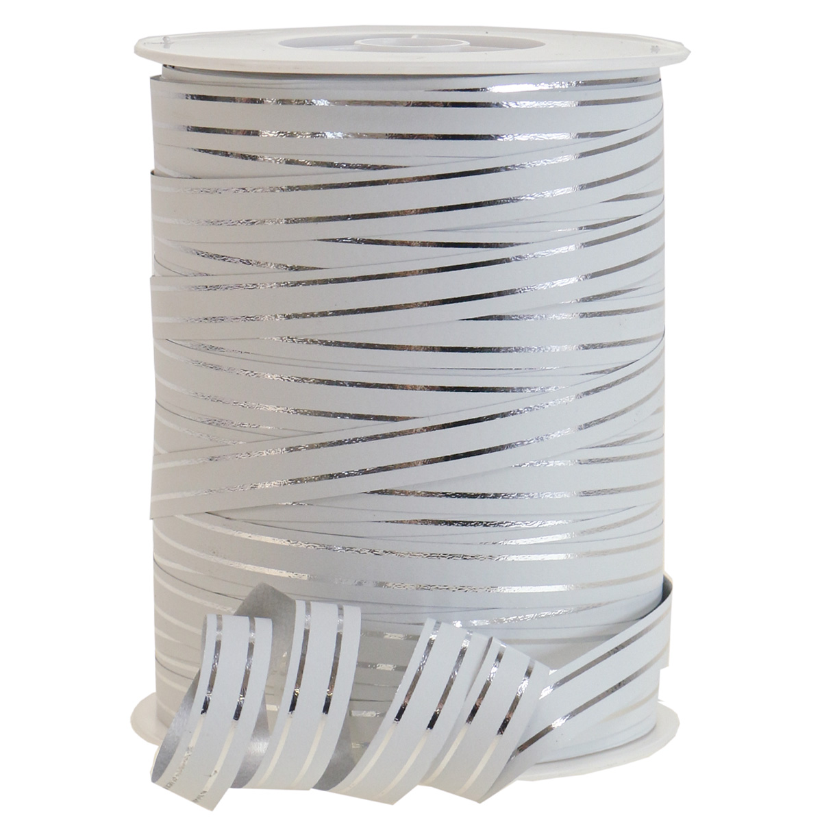 Kräuselband Geschenkband Schleifenband Weiß mit Silberstreifen 10mm 250m
