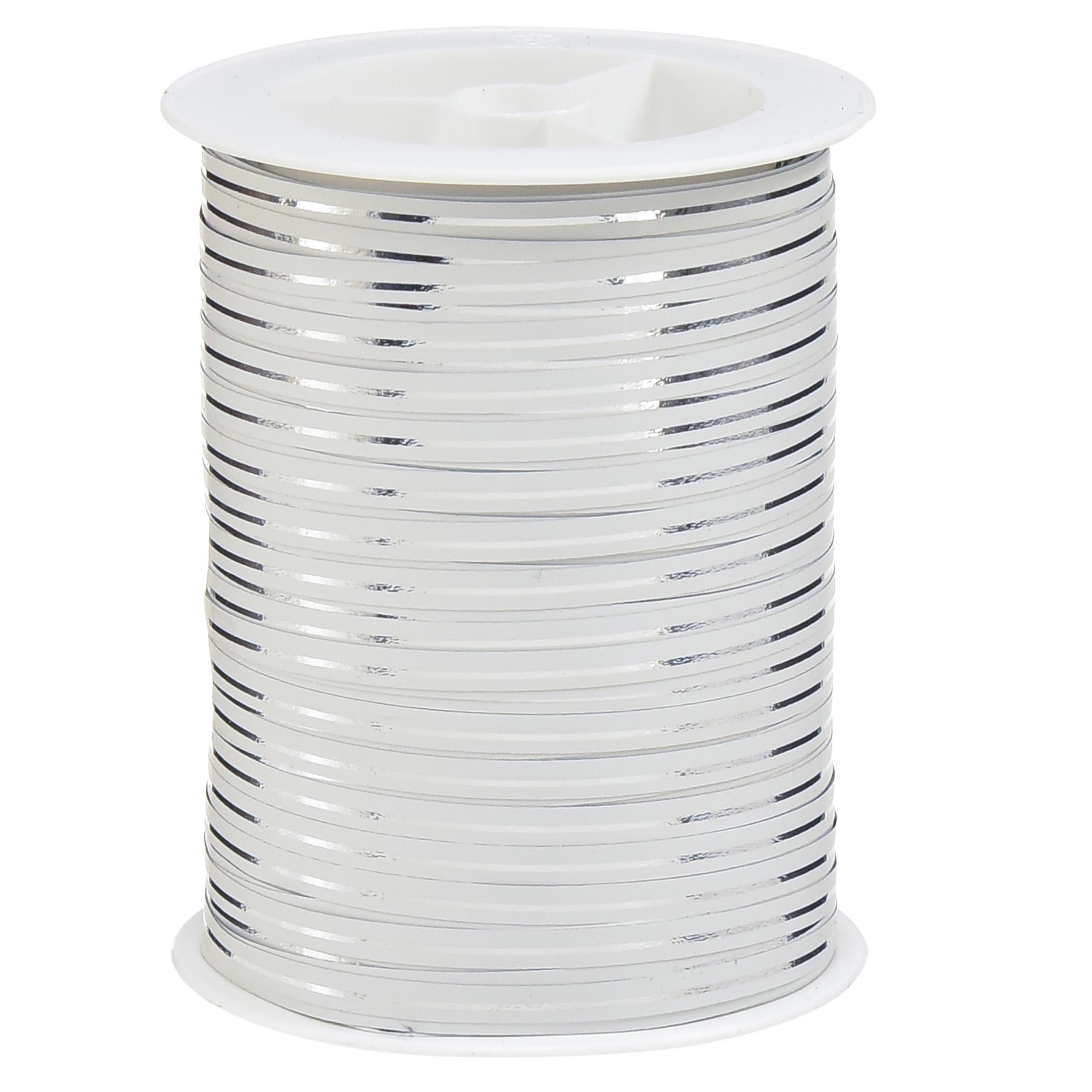 Produktname: Kräuselband Geschenkband Weiß mit Silberstreifen 5mm 250m