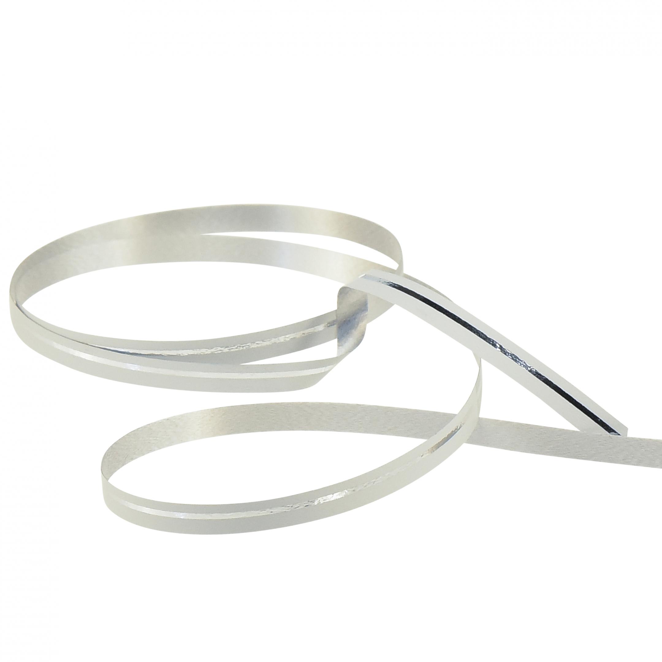 Kräuselband Geschenkband Weiß mit Silberstreifen 5mm 250m