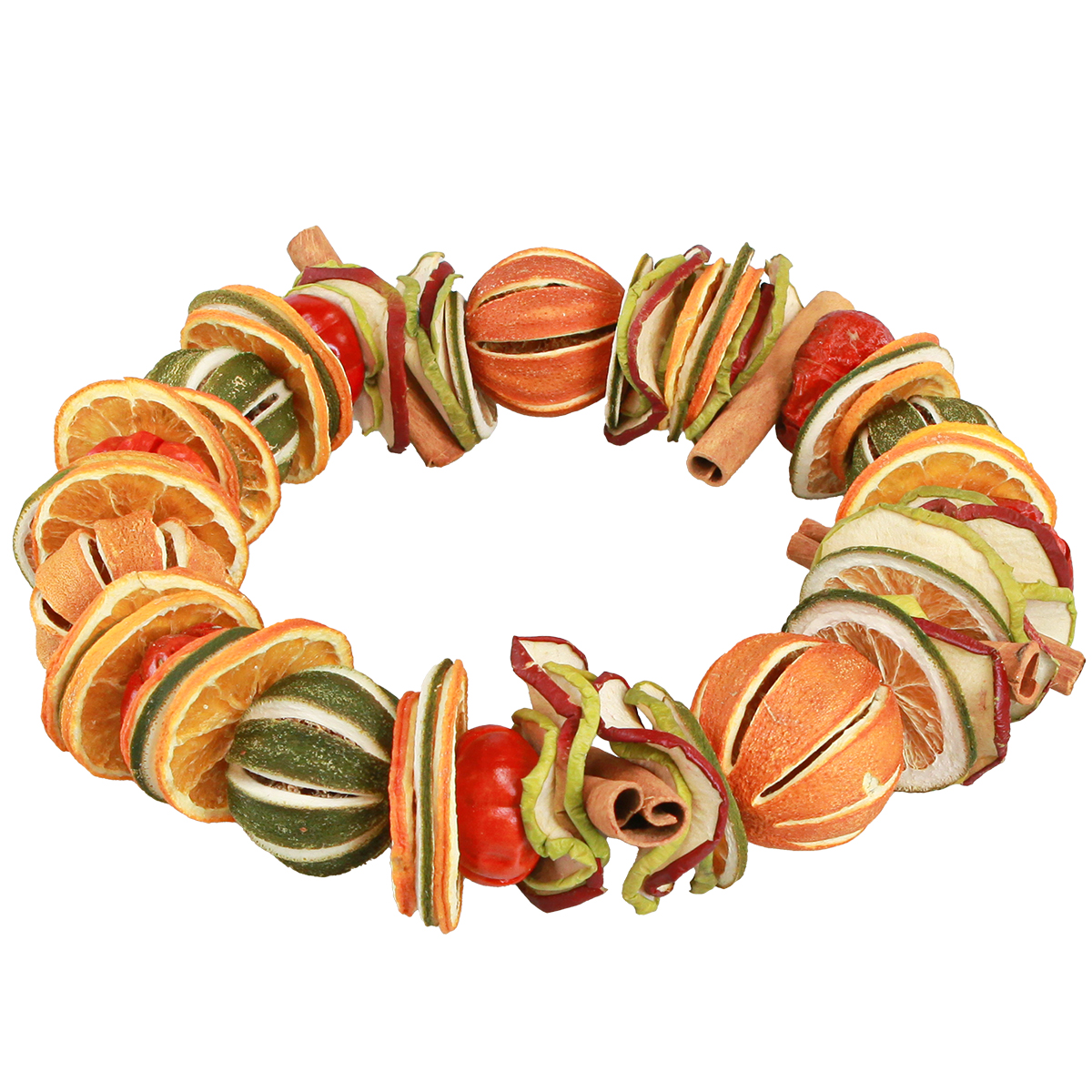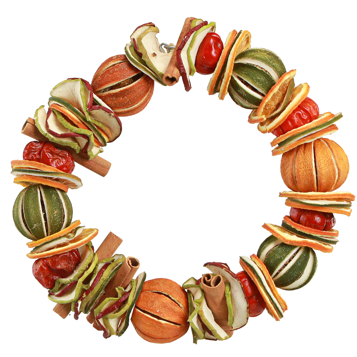 - Ganze Früchte und Fruchtscheiben auf stabilem Metallring – sorgfältig getrocknet und konserviert