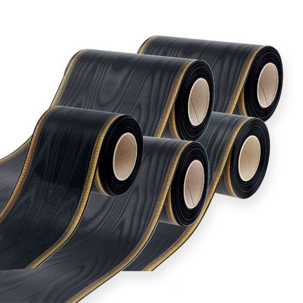 Unser exquisites Kranzband ist von hoher Qualität und mit echtem französischem Moiré veredelt. Die eingewebte Perlkante in Gold macht das schwarze Schleifenband zum idealen Begleiter für die Trauerfloristik. Vergütet mit einer speziellen Appretur bietet das Moiré-Kanzband eine gute Beschriftungsqualität für den Prägedruck. Trotz der hochwertigen Beschaffenheit ist das Band umweltfreundlich, da es leicht verrottet und außerdem wasserfest. Das schwarze Schleifenband hat eine Breite von 100 bis 200 Millimetern.