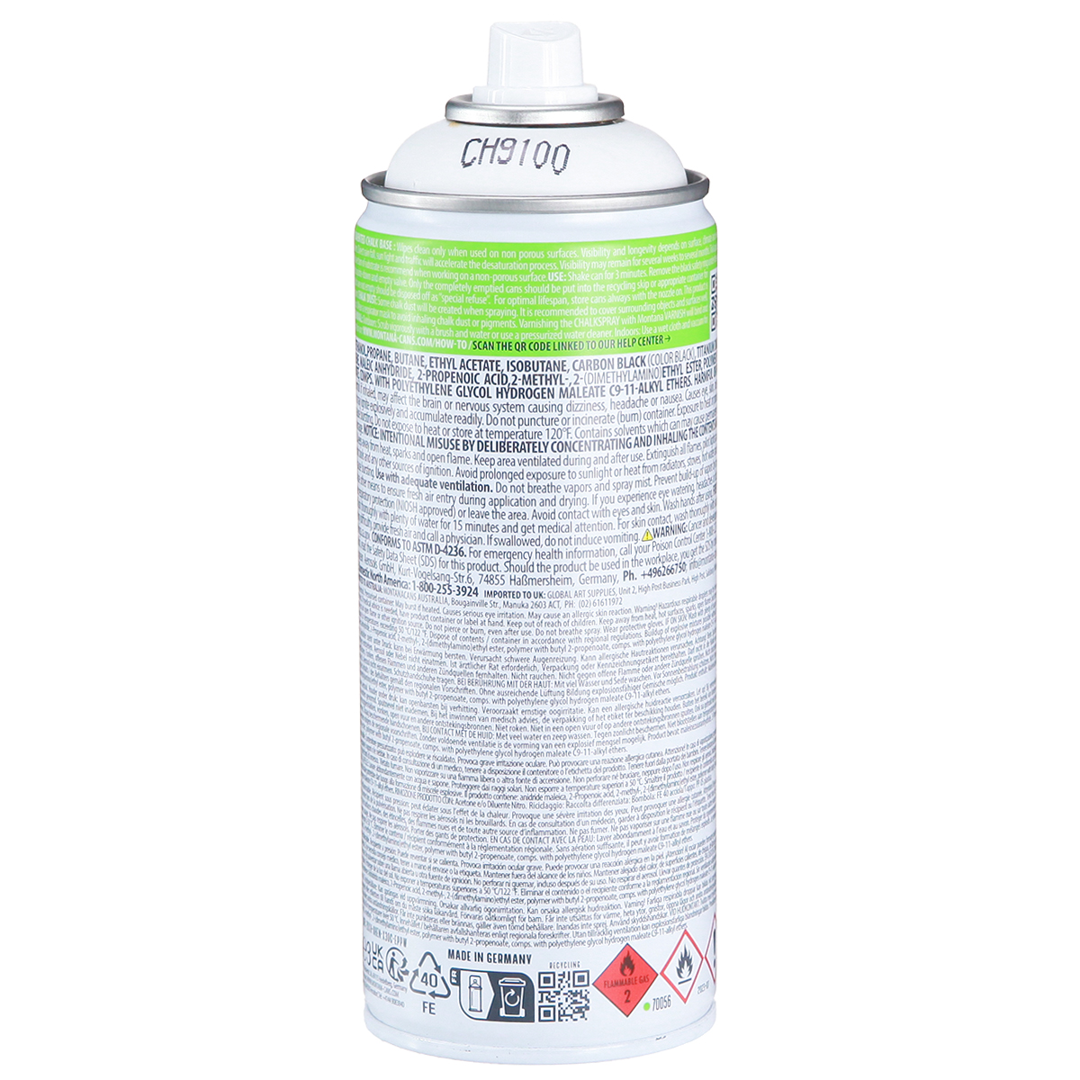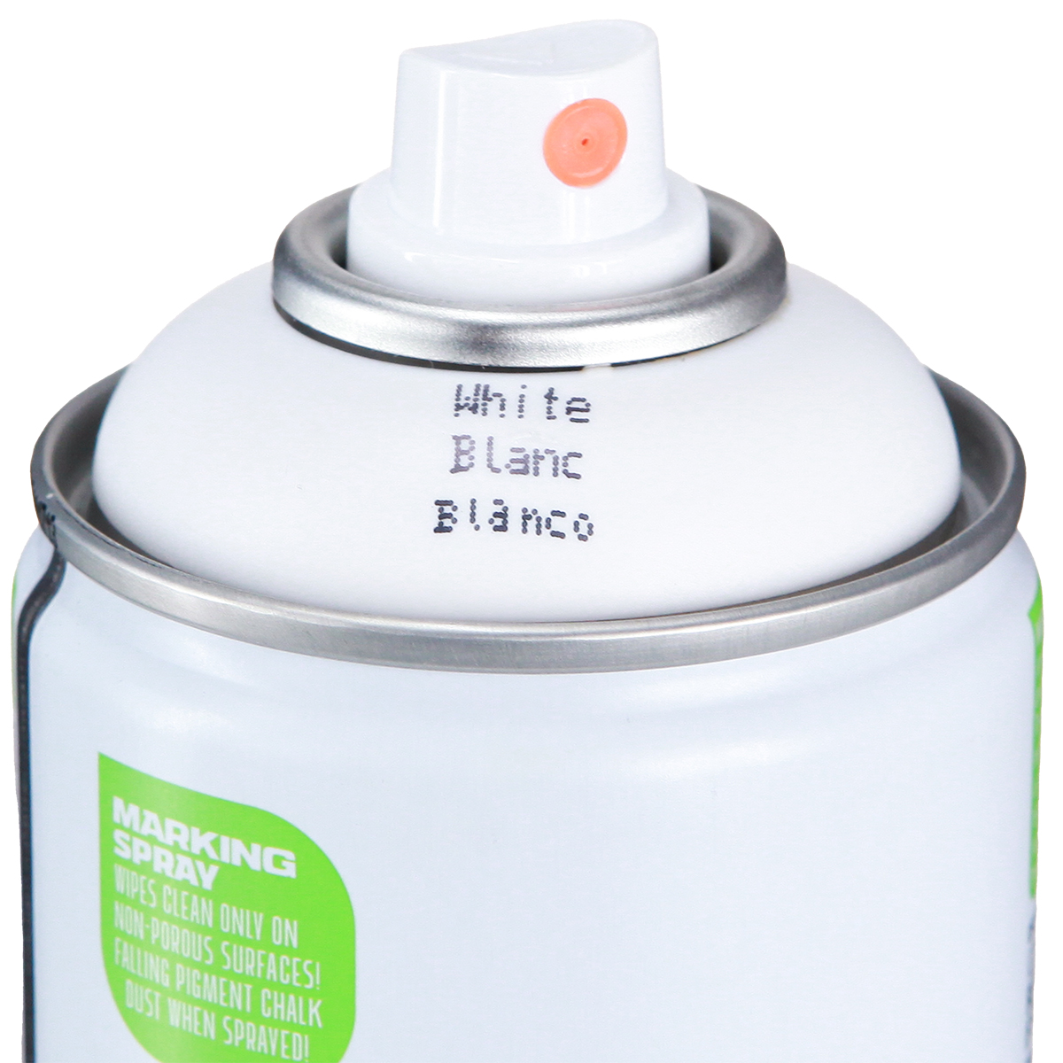 Das Markierungsspray in mattem Weiß von Montana Cans trägt die Farbnummer CH9100 und wird in einer Dose zu insgesamt 400 Millilitern angeboten. Die Spezialdüse ist perfekt für vertikale und horizontale Flächen sowie Schablonen geeignet.