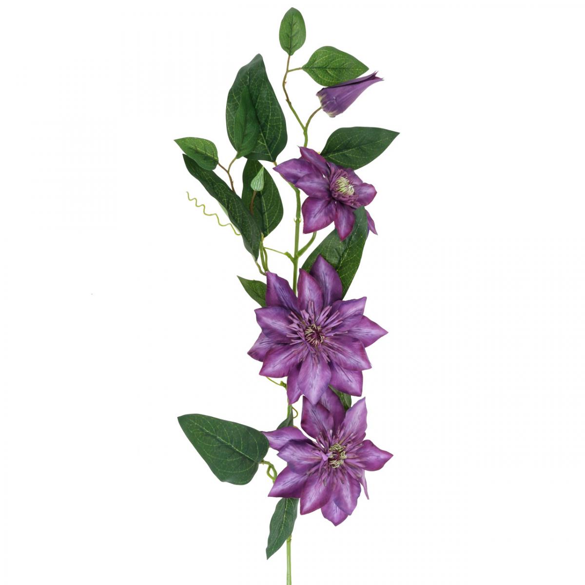 Künstliche Clematis, Seidenblume, Dekozweig mit Clematisblüten Violett L84cm