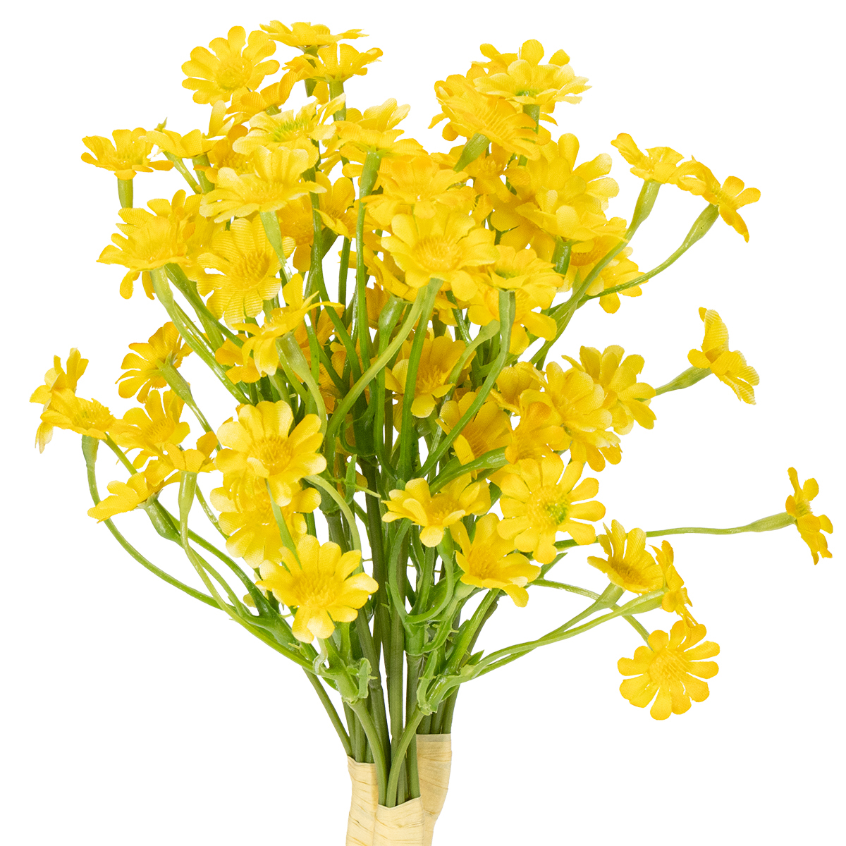 Die künstliche Kamille in leuchtenden Gelbtönen bringt genau die freundliche, warme Ausstrahlung, die jeder Raum gebrauchen kann. Ihre zierlichen Blüten wirken erstaunlich lebendig, während die stabilen Stiele eine beeindruckende Authentizität vermitteln. Mit einer Höhe von 28 cm fügt sich der Blumenbund harmonisch in verschiedene Gefäße ein – ob in schlichten Vasen für einen modernen Look oder in rustikalen Töpfen für den Landhausstil.