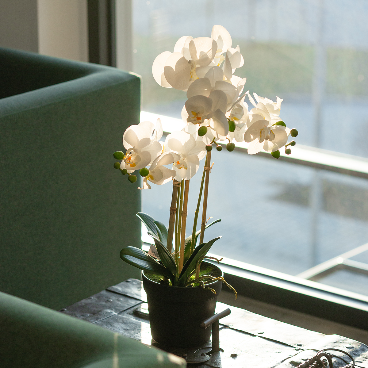 Was macht diese Orchidee zu einer so beliebten Wahl? Sie vereint anspruchslose Pflege mit der optischen Wirkung einer echten Pflanze. Ganz gleich, ob Sie einen modernen Skandi-Look, ein elegantes Glamour-Interieur oder ein minimalistisches Ambiente bevorzugen – die weiße Orchidee fügt sich harmonisch ein. Besonders schön wirkt sie in Kombination mit goldfarbenen oder gläsernen Vasen und Accessoires. Verleihen Sie Ihrem Zuhause oder Arbeitsplatz eine einladende Atmosphäre, die zum Verweilen einlädt.
