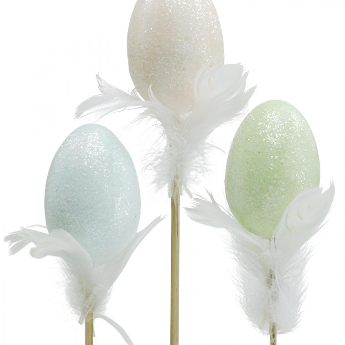 Produktname: Künstliche Ostereier am Stab Pastell Ei Osterdeko H6cm 6St