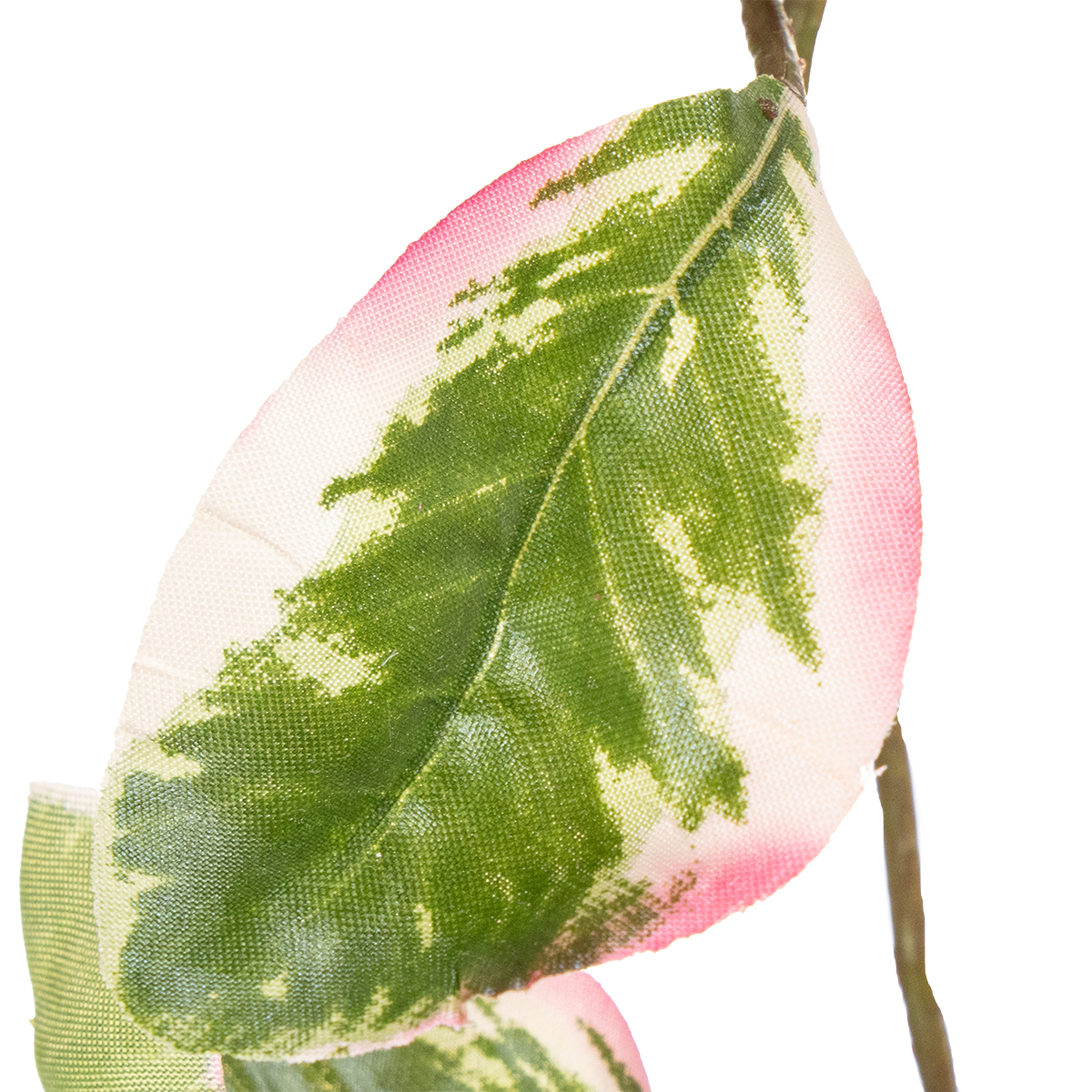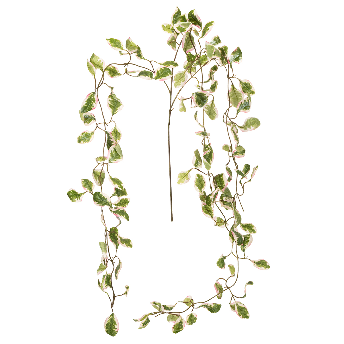 Diese künstliche Pflanzen Girlande wurde mit viel Liebe zum Detail entworfen, um einen möglichst natürlichen Look zu schaffen. Die oval bis elliptisch geformten Blätter mit glattrandiger Oberfläche wirken wie frisch gepflückt. Besonders charmant sind die leicht roséfarbenen Akzente, die vor allem bei genauer Betrachtung einen echten Eyecatcher darstellen. Dank ihres dichten Blattwerks und der harmonischen Farbdetails passt die Girlande wunderbar in unterschiedlichste Stilrichtungen, sei es Boho, Landhausstil oder Shabby Chic.