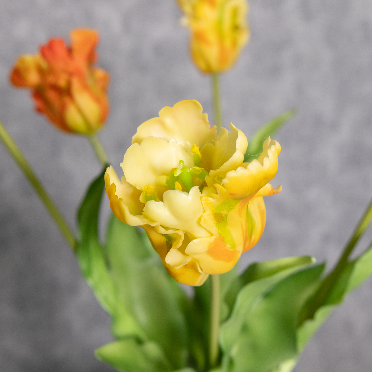 Diese künstlichen Tulpen sind ein echter Hingucker und überzeugen durch ihre authentische Optik. Mit 53 cm Höhe und einem Durchmesser von 8 cm haben sie die perfekte Größe, um einzeln in einer schmalen Vase oder als Strauß in einer großen Bodenvase stilvoll zu wirken. Dank des hochwertigen Materials aus Polyester und Kunststoff fühlen sich die Blüten und Blätter angenehm weich an und behalten dauerhaft ihre Farbenpracht. Besonders praktisch: Sie lassen sich vielseitig einsetzen. Ob als elegante Wohnzimmerdekoration, für saisonale Akzente im Frühling oder als Highlight bei Festlichkeiten – ihre leuchtende Farbe ist ein echter Stimmungsmacher. Kombinieren Sie die Tulpen leicht mit weiteren künstlichen Blumen, um farblich harmonische Sträuße zu gestalten. Wer es minimalistisch mag, arrangiert sie einfach puristisch in einer hohen weißen Keramikvase. Der Stil? Zeitlos und modern! Diese Tulpen fügen sich in skandinavische, moderne und klassische Einrichtungsstile gleichermaßen elegant ein. Noch ein Tipp: Sie sind praktisch unzerstörbar – perfekt für Haushalte mit Kindern oder Haustieren. Wer oft seine Dekoration verändert, wird ihre Flexibilität lieben: Einfach die Vase wechseln, eine neue Anordnung ausprobieren – schon entsteht ein neues Deko-Konzept.