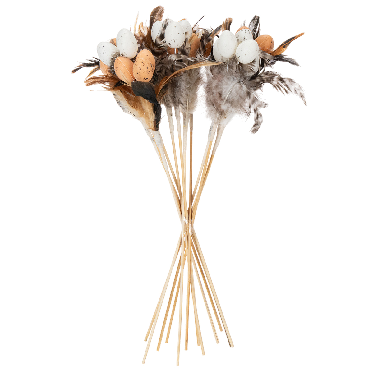 Künstliche Wachteleier Deko Federn am Stab 36cm 12St